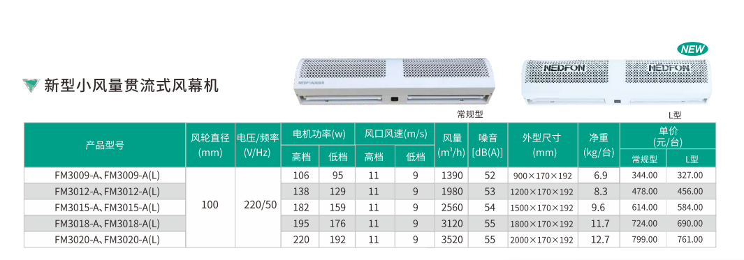 FM-3009-A绿岛风风幕机 0.9米两档 商品代码80020
