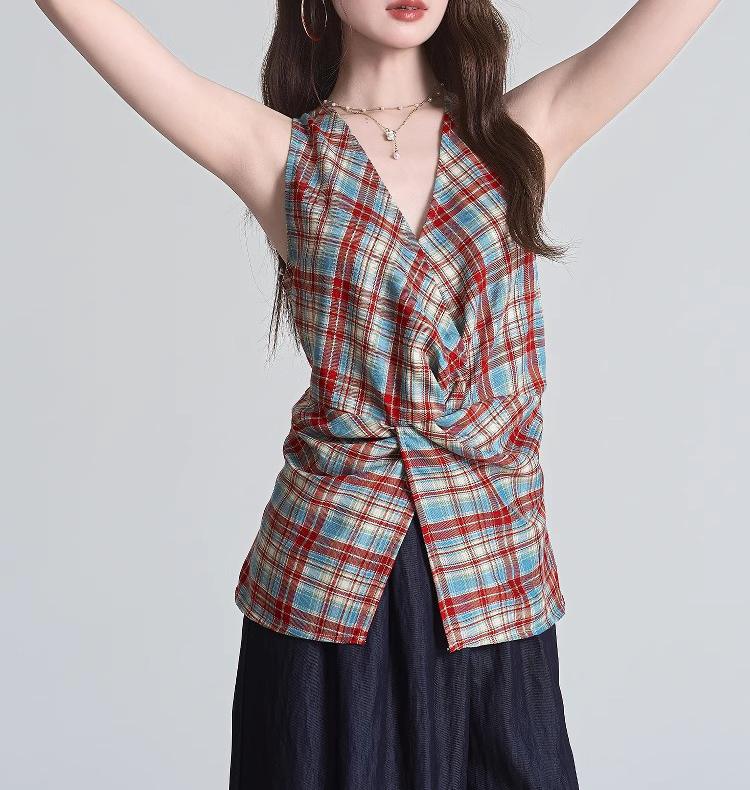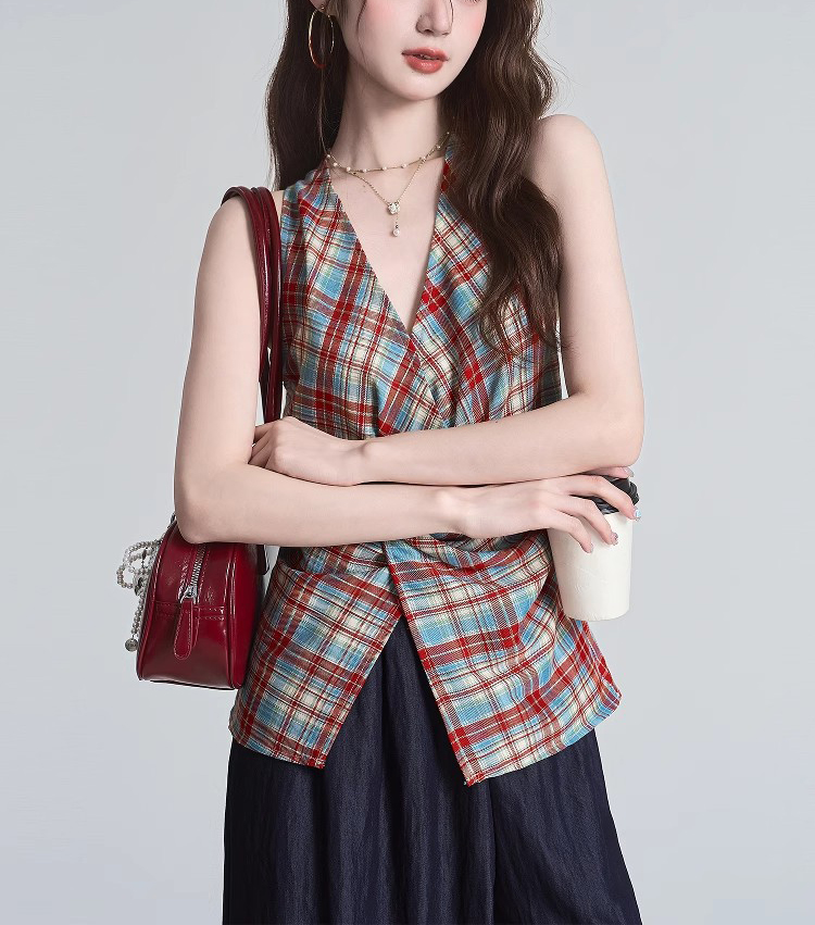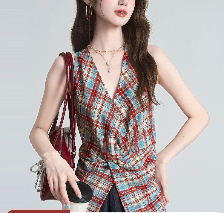 裁缝学苑AH19设计感无袖挂脖背心纸样女装绑带修身收腰上衣打版