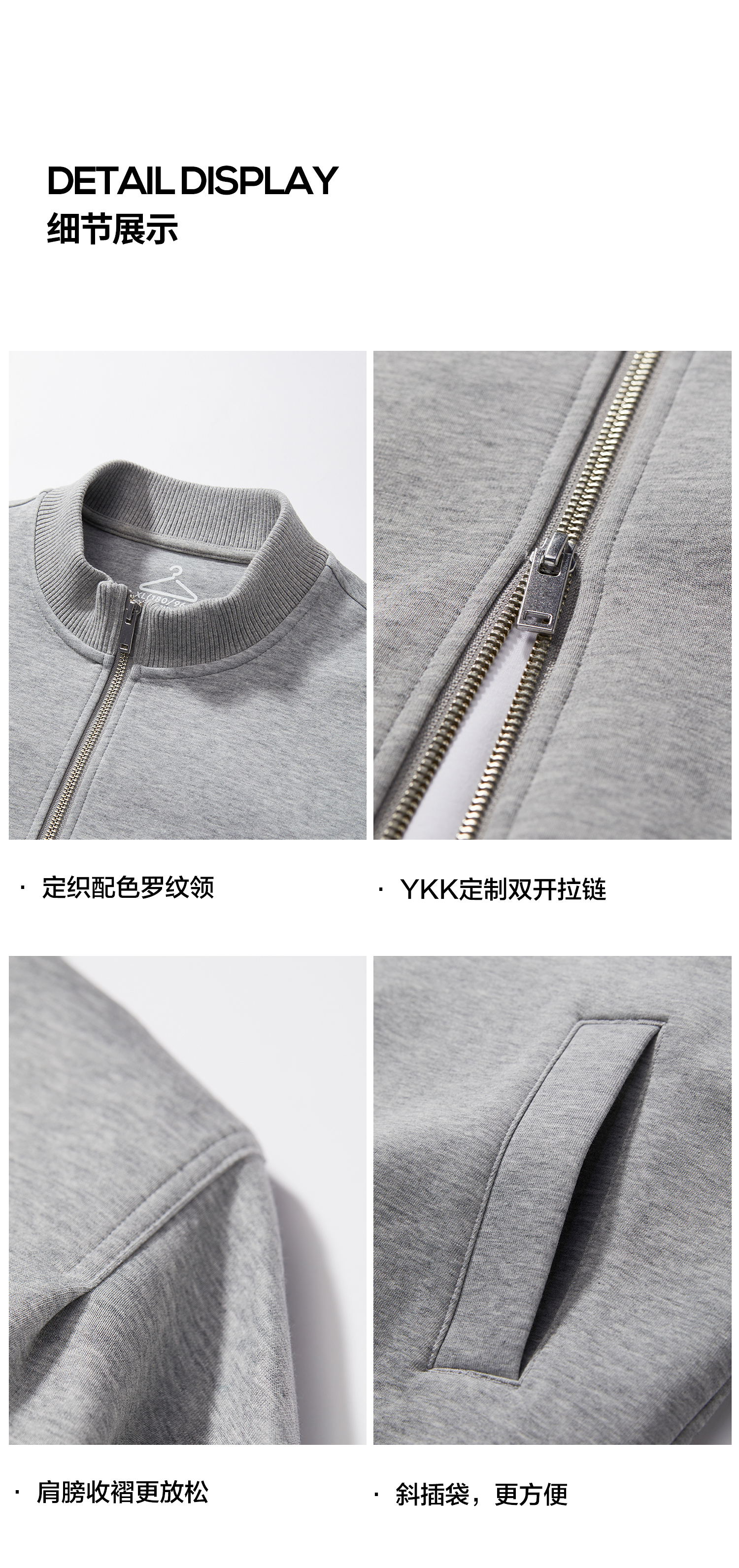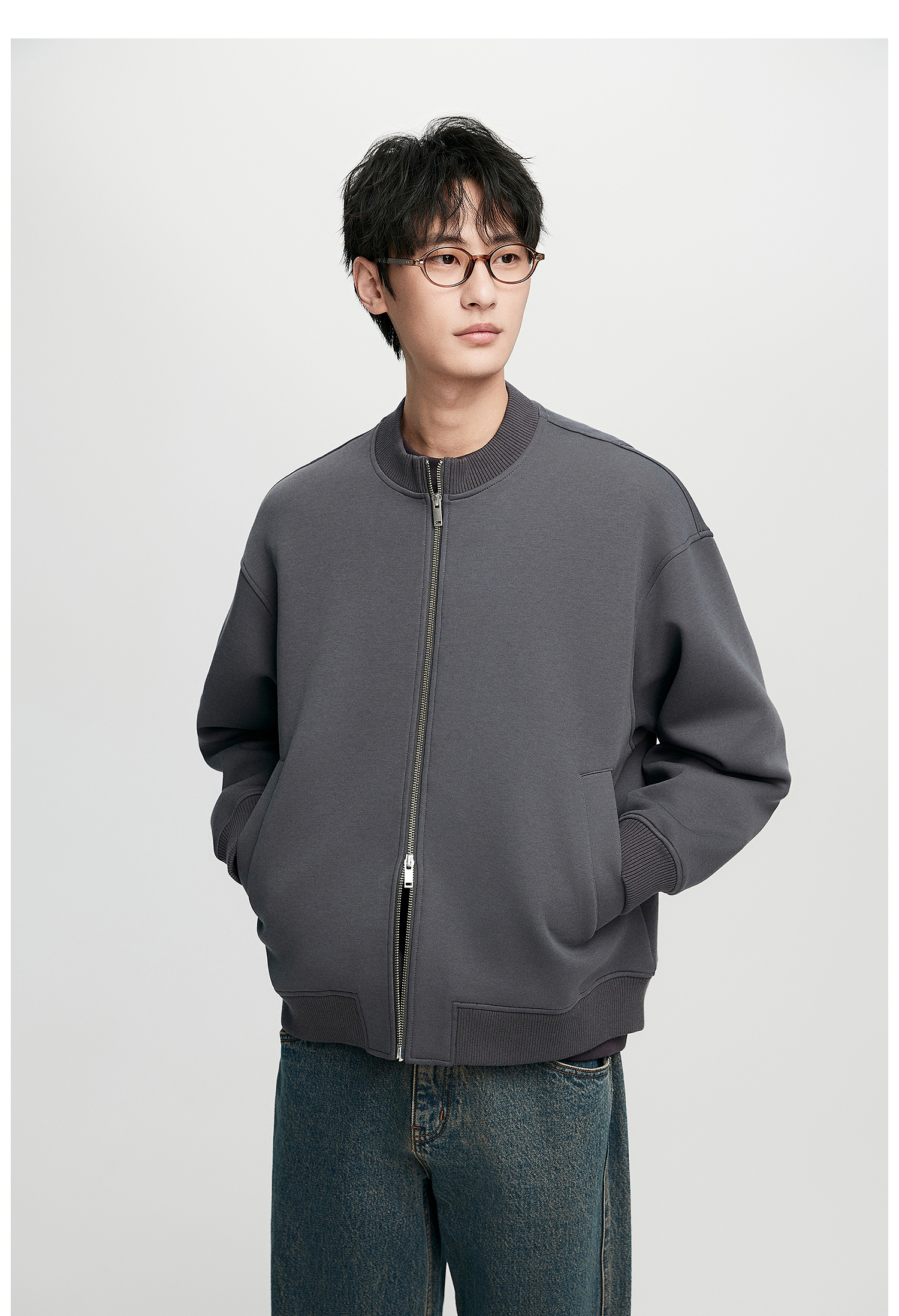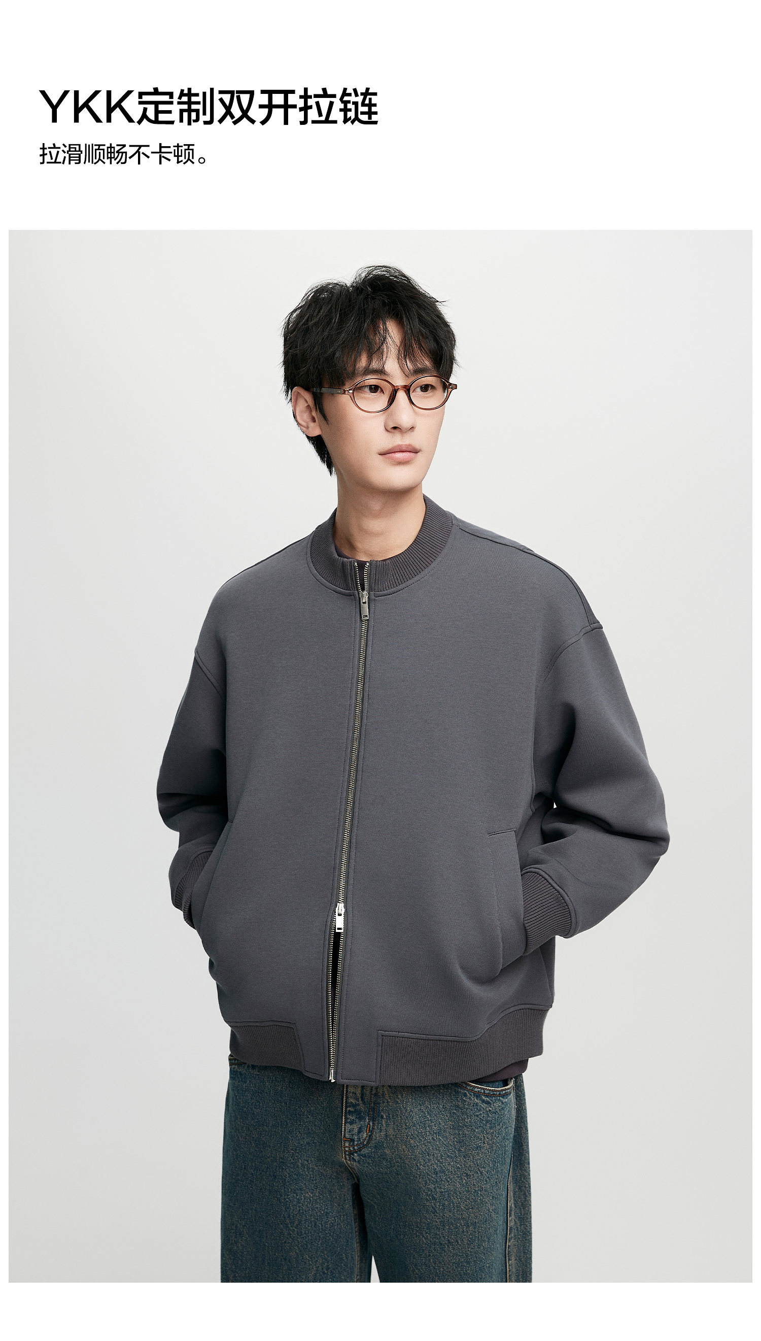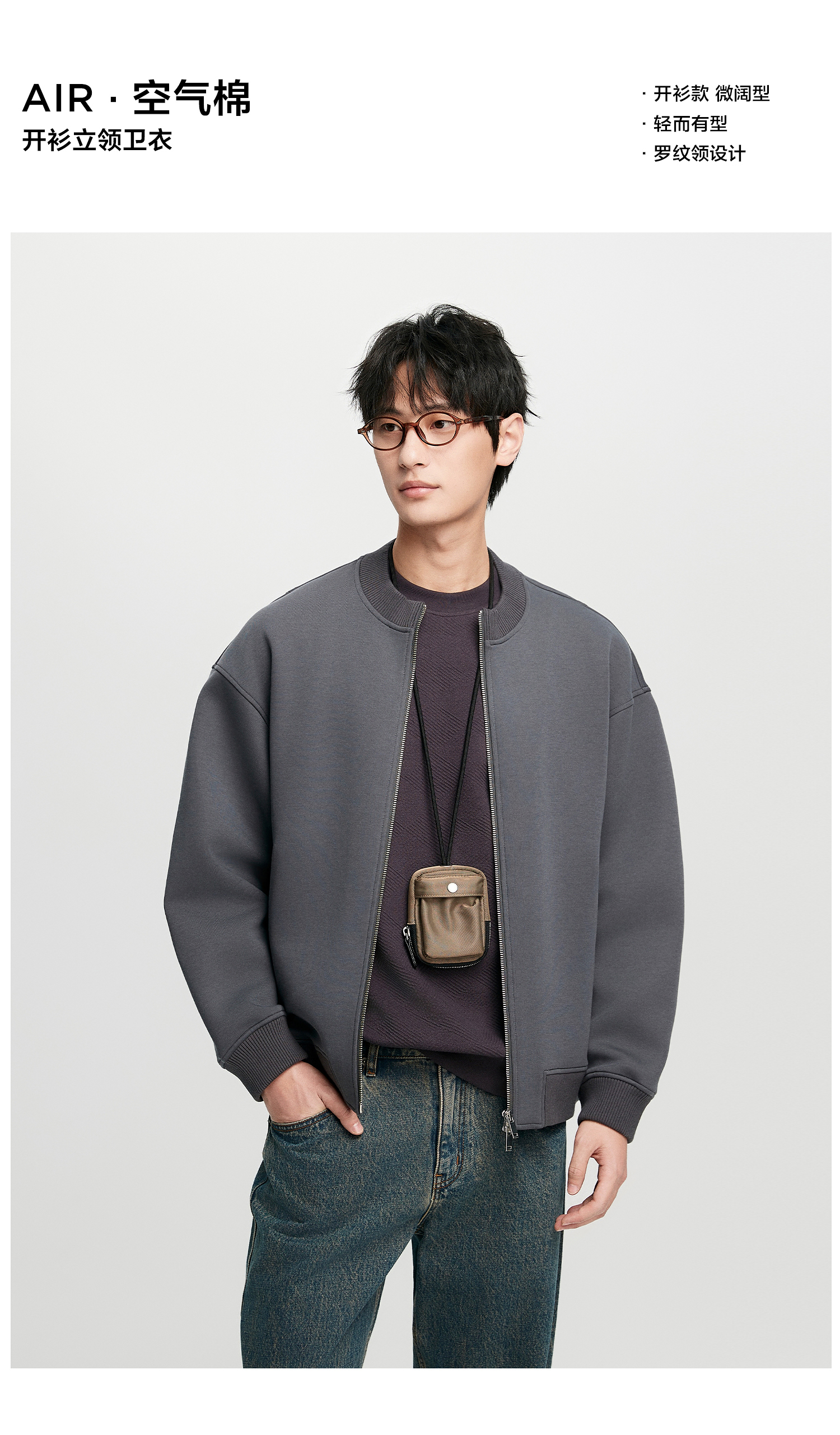 棉仓352808004-5系空气棉开衫立领棒球服男 秋季宽松休闲双开拉链卫衣外套