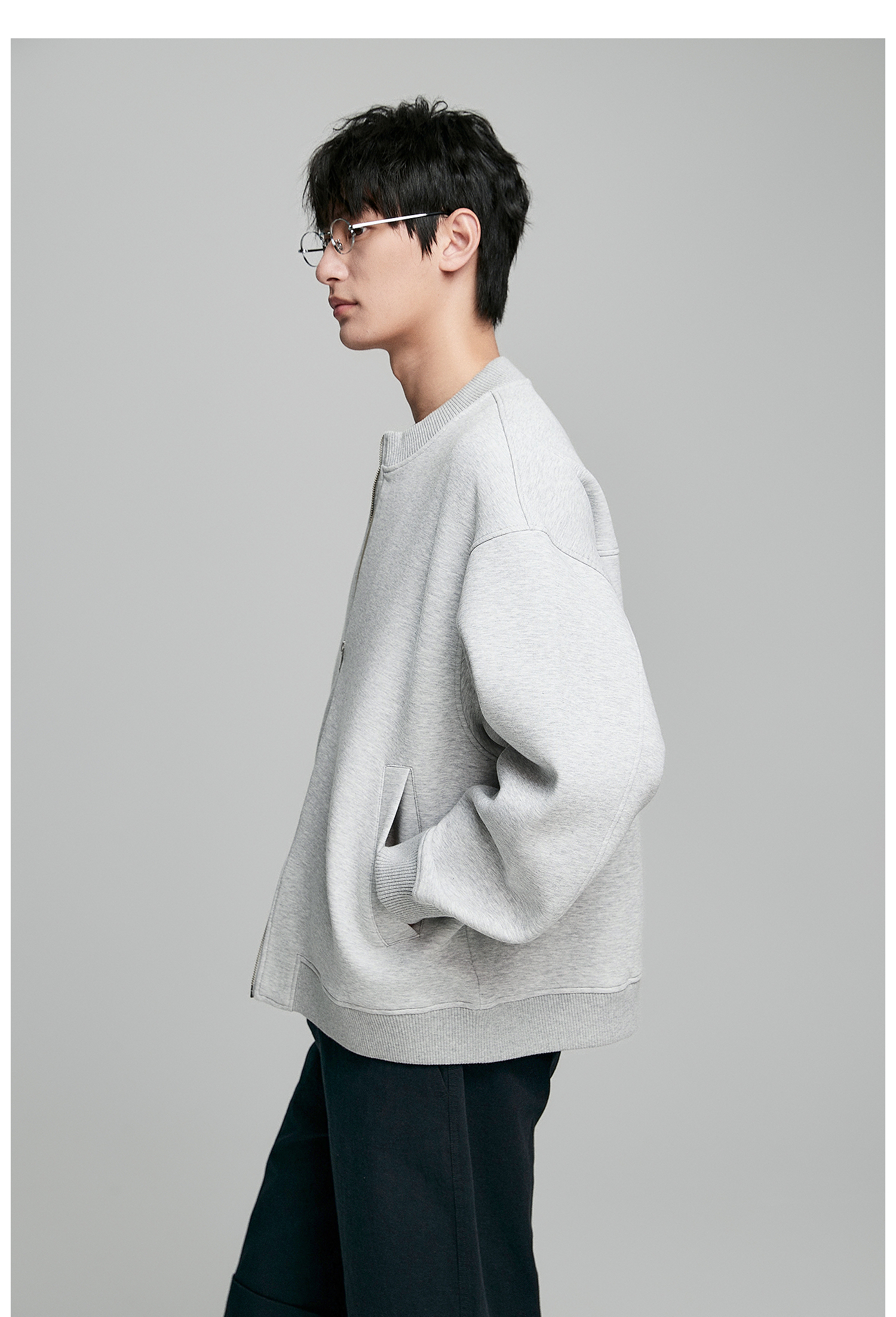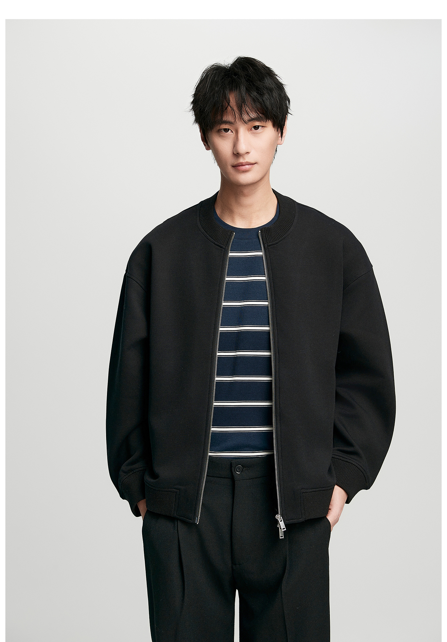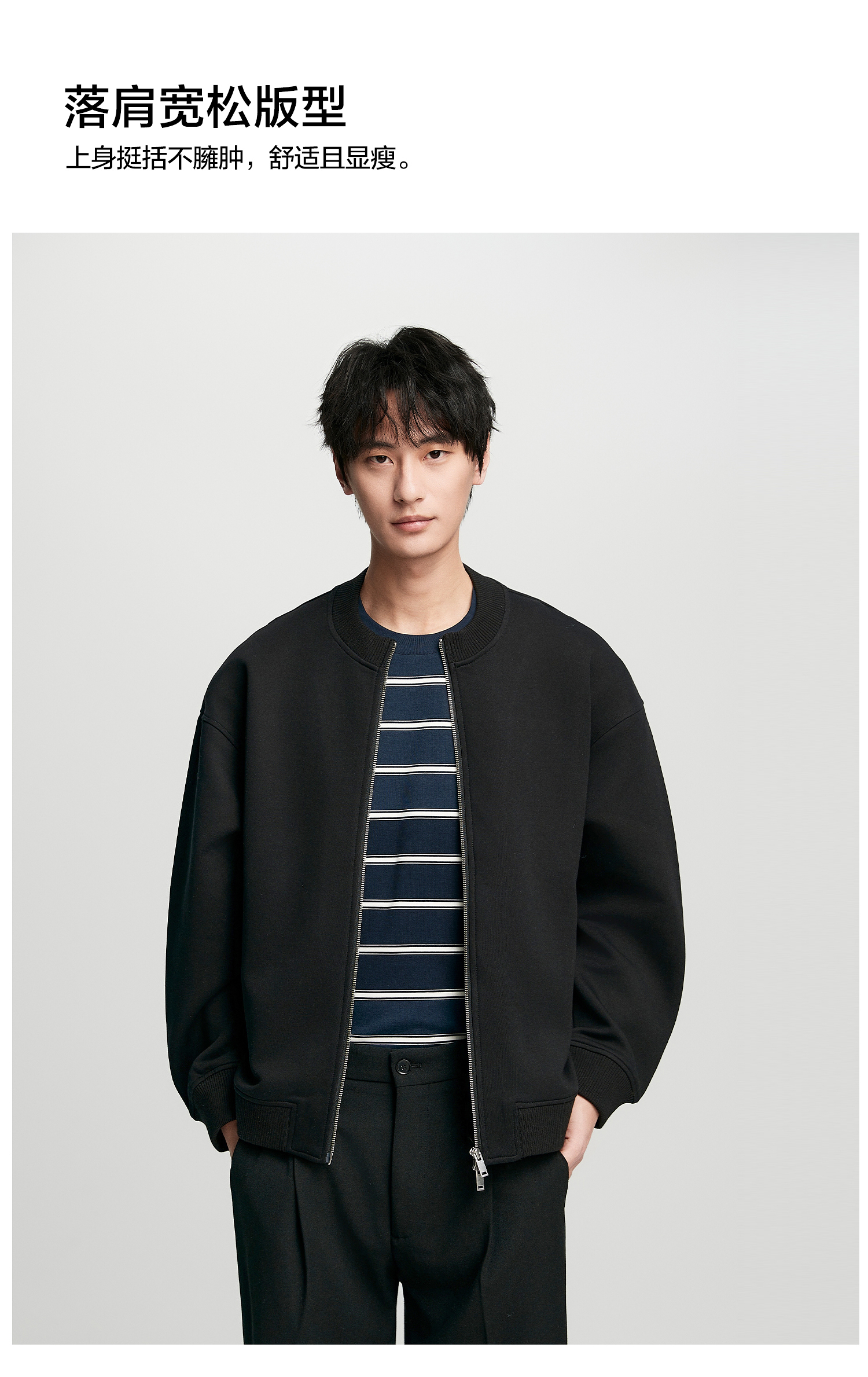 棉仓352808004-5系空气棉开衫立领棒球服男 秋季宽松休闲双开拉链卫衣外套