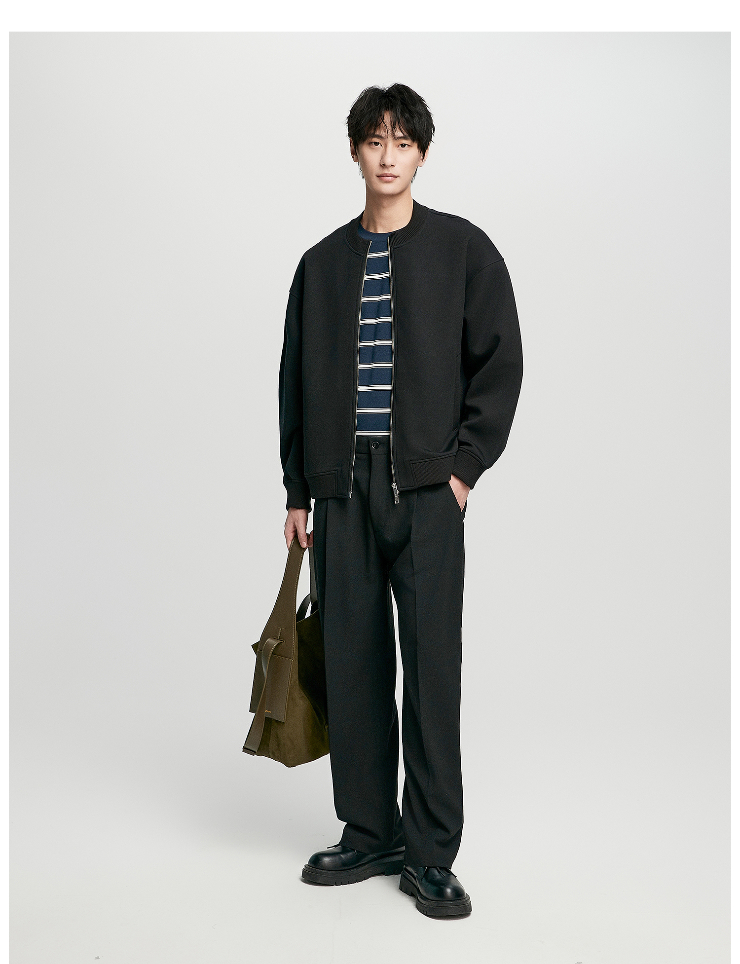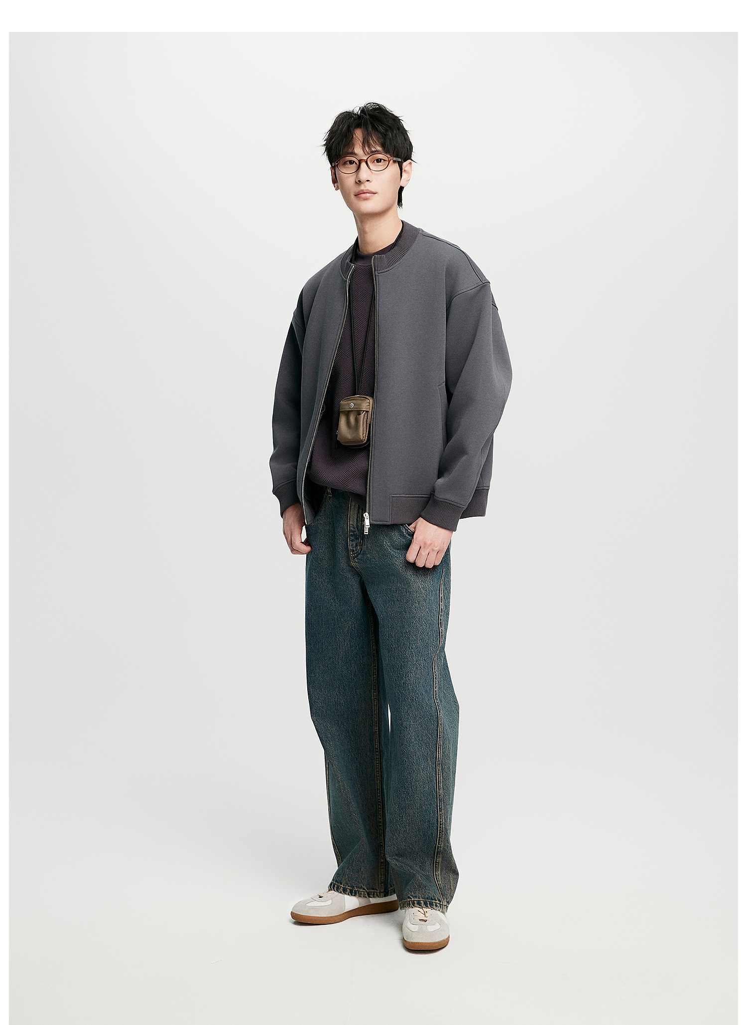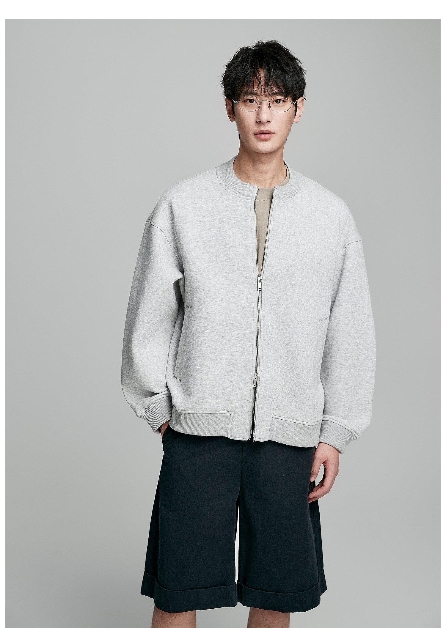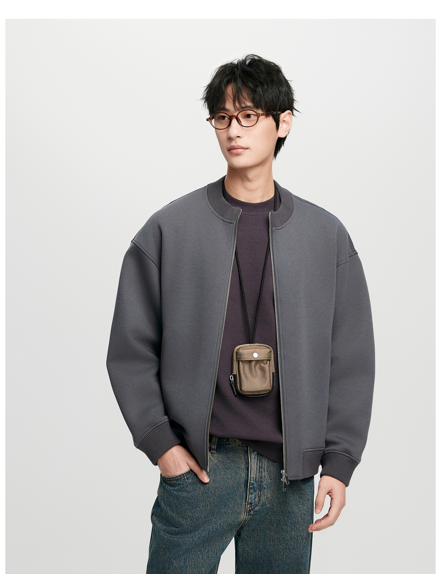 棉仓352808004-5系空气棉开衫立领棒球服男 秋季宽松休闲双开拉链卫衣外套