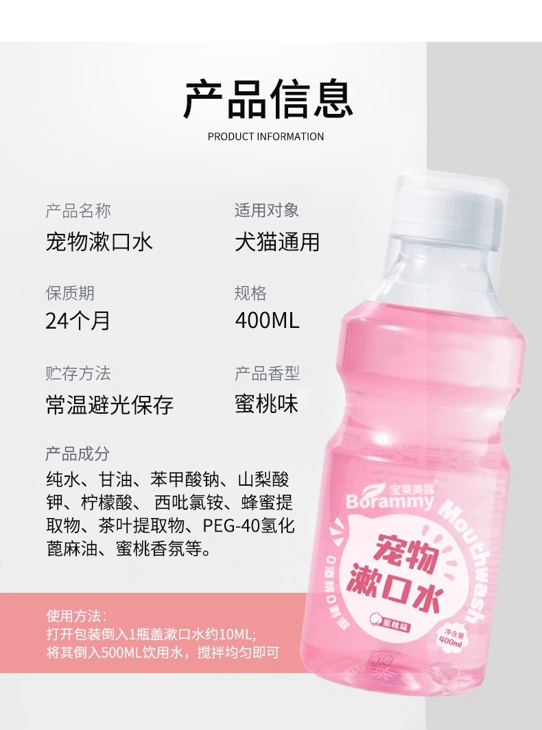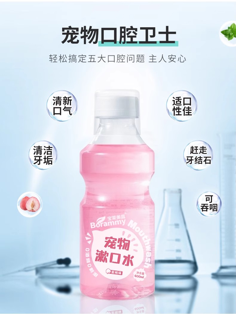 严选宠物漱口水狗狗猫咪通用洁齿水口腔清洁口气清新蜜桃味400ml