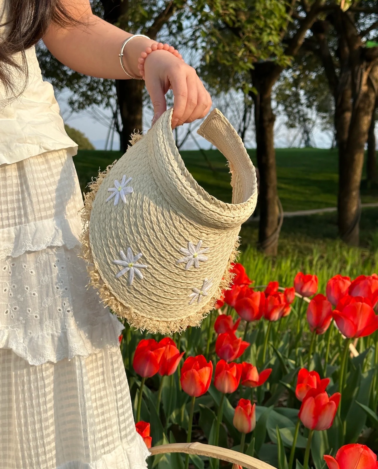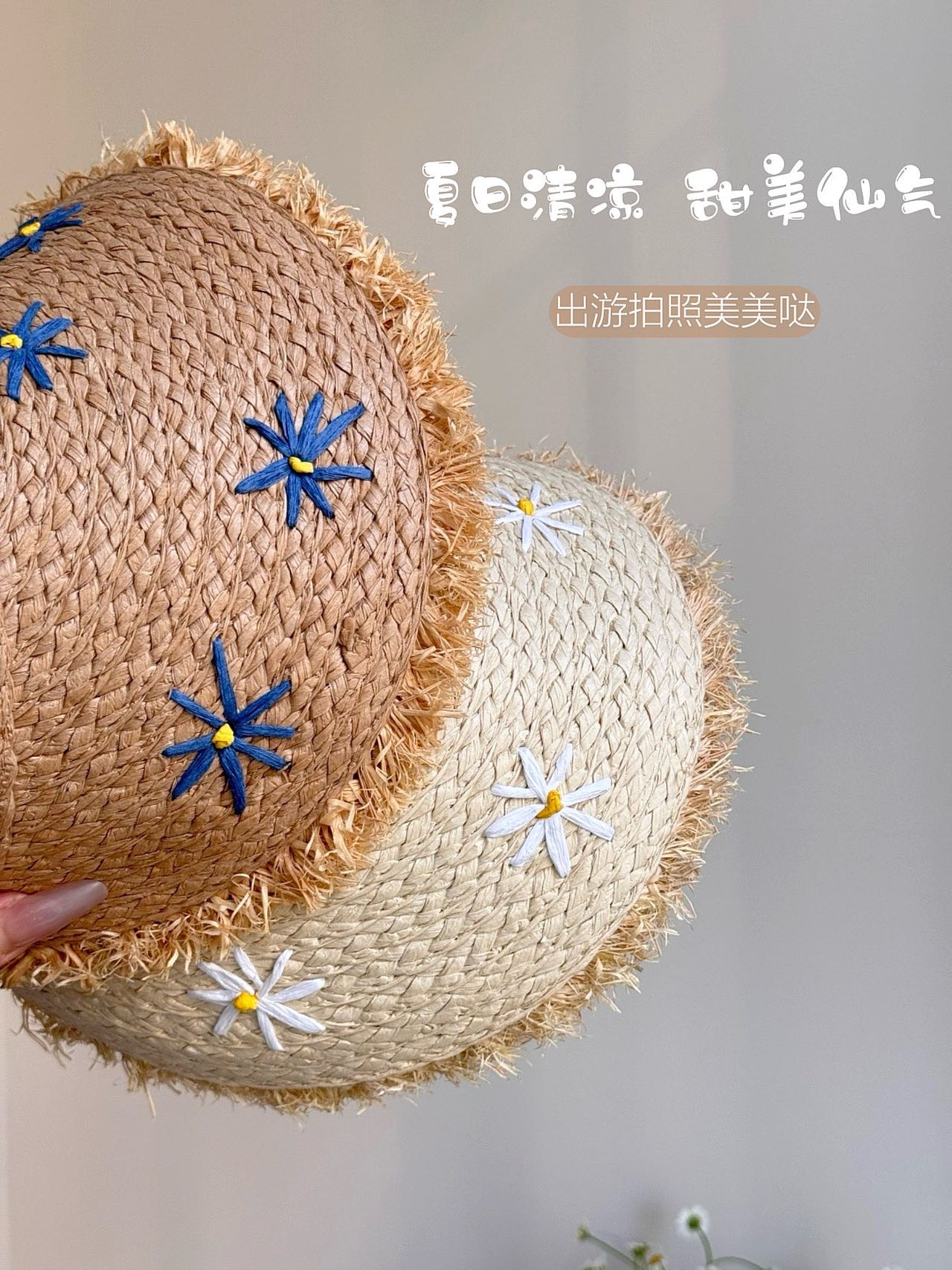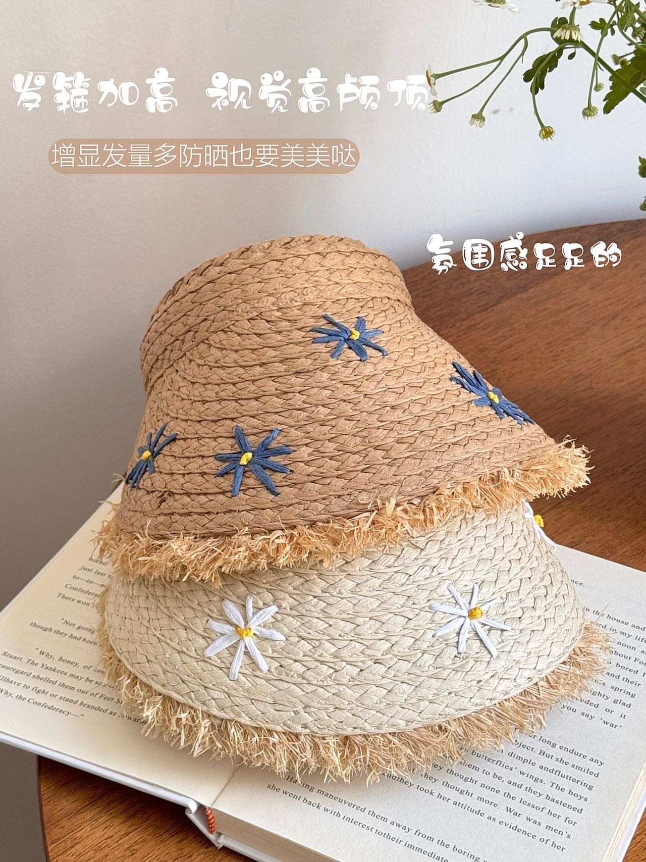 【杏小の屿春日小雏菊空顶帽】 小雏菊元素与帽子设计结合 好东西火速安排上~增添小雏菊元素、清新自然感 毛边的设计,走路时自带仙气~