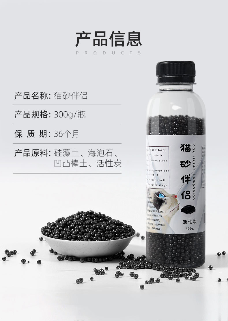 严选【猫砂除臭珠活性炭300g瓶】猫砂伴侣祛味除臭珠猫砂盆除味珠猫咪用品
