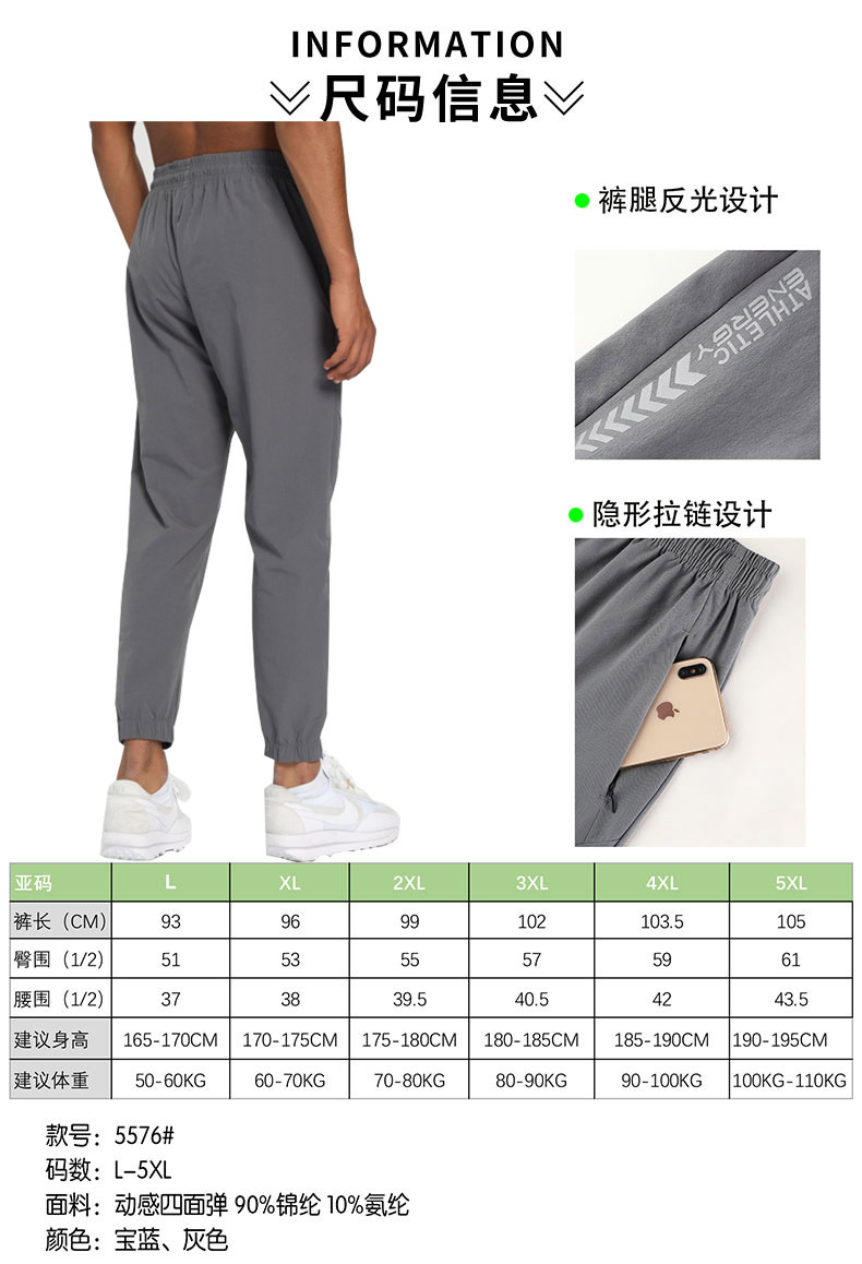 跃牌【跃LEAP-ACTIVE】跑步休闲运动健身长裤男款 户外束脚修身数码直喷印花跑步健身裤5576