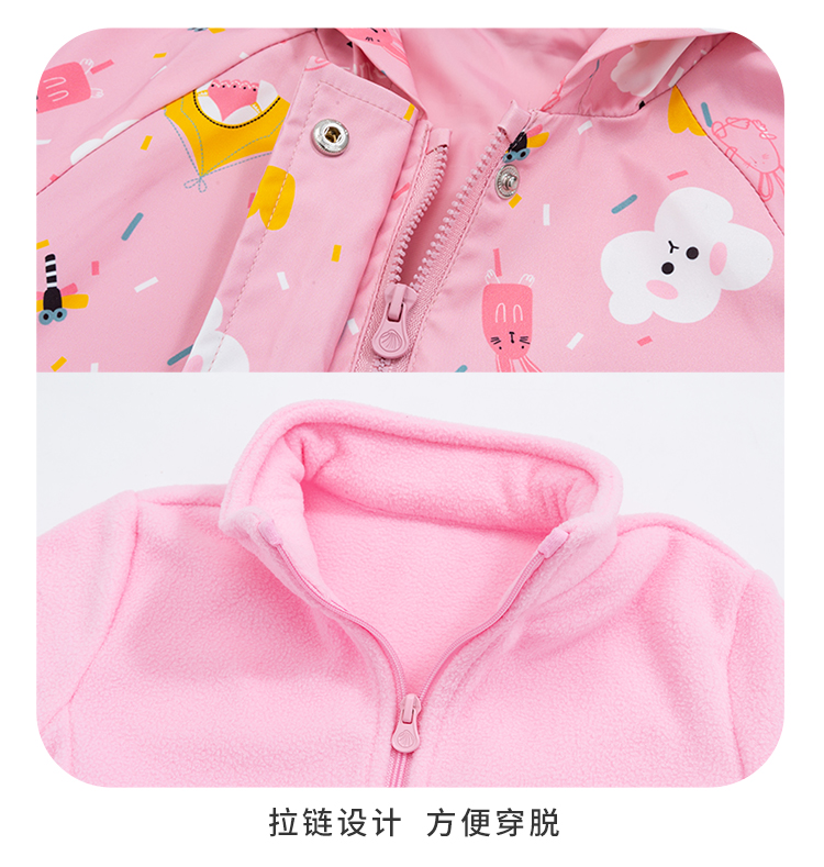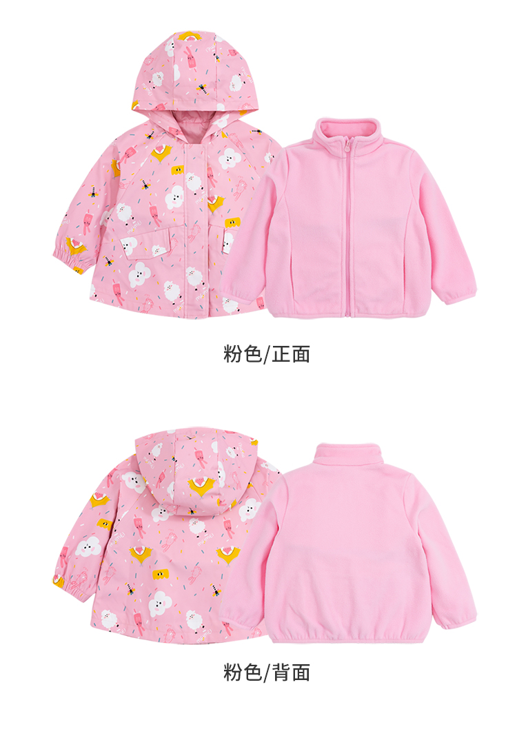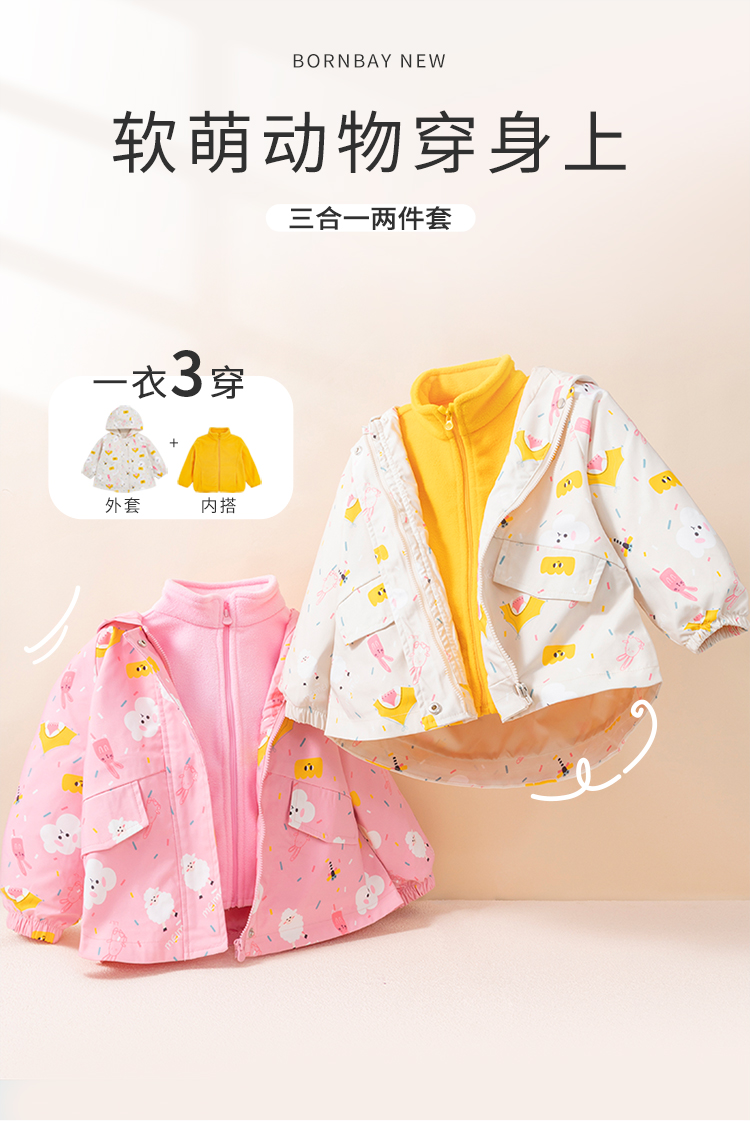贝贝怡女童三合一冲锋衣宝宝加绒加厚小童风衣两件套儿童秋冬外套223S3051