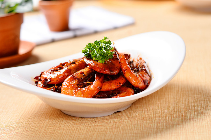 鲜活的基围虾佐以跑火秘制辣卤香料!