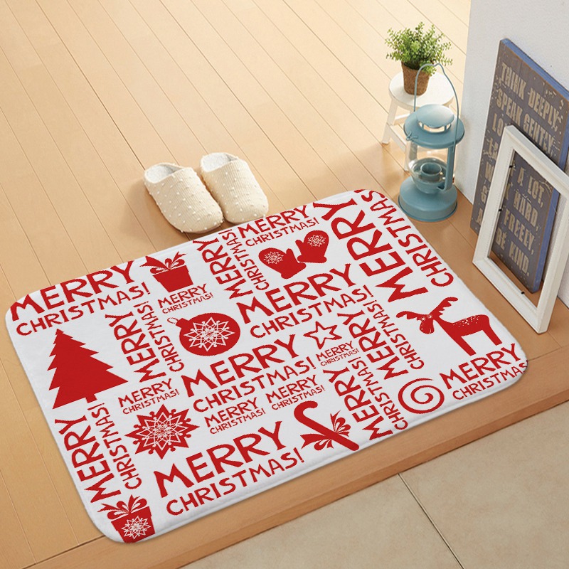 【优质短绒 舒适触感】红色圣诞节地垫 圣诞老人圣诞树珊瑚绒入门家居脚垫