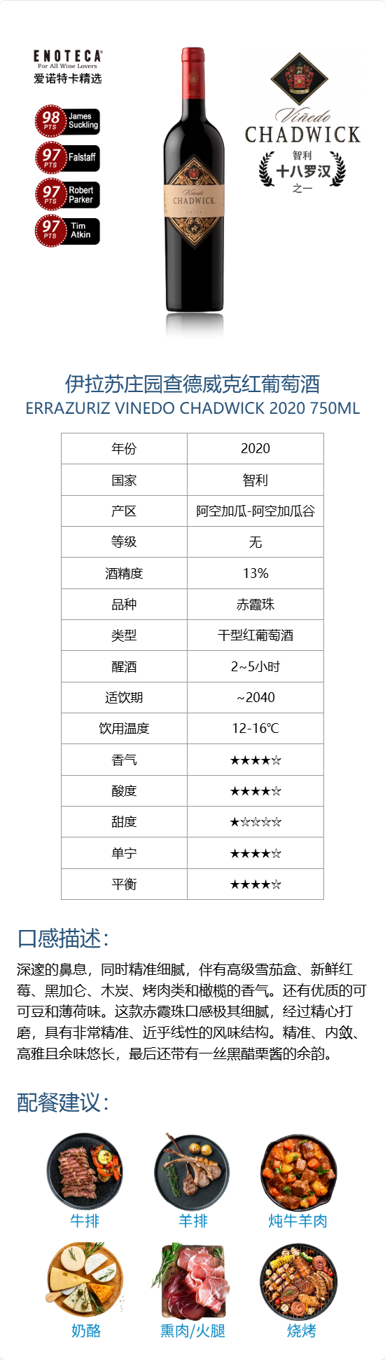 【联系客服询问底价】查德威克红葡萄酒 2020 750ml