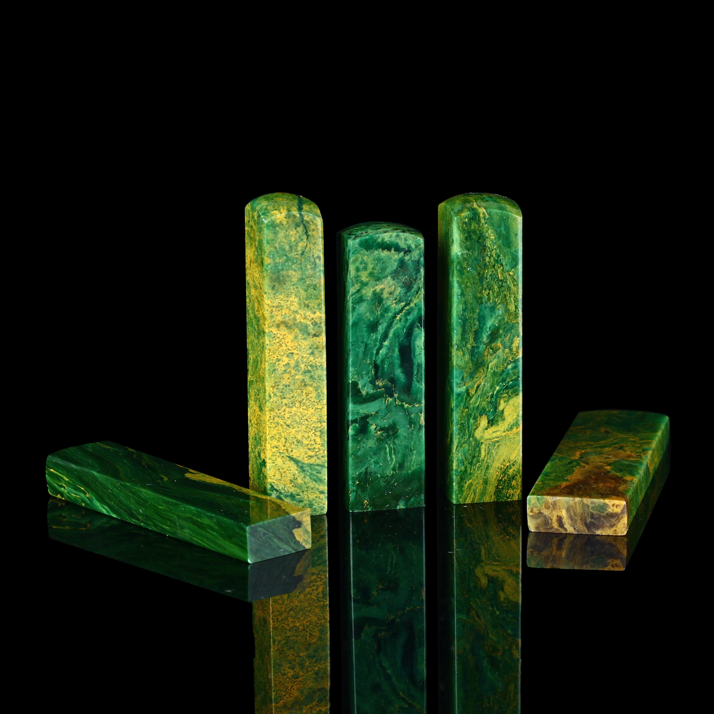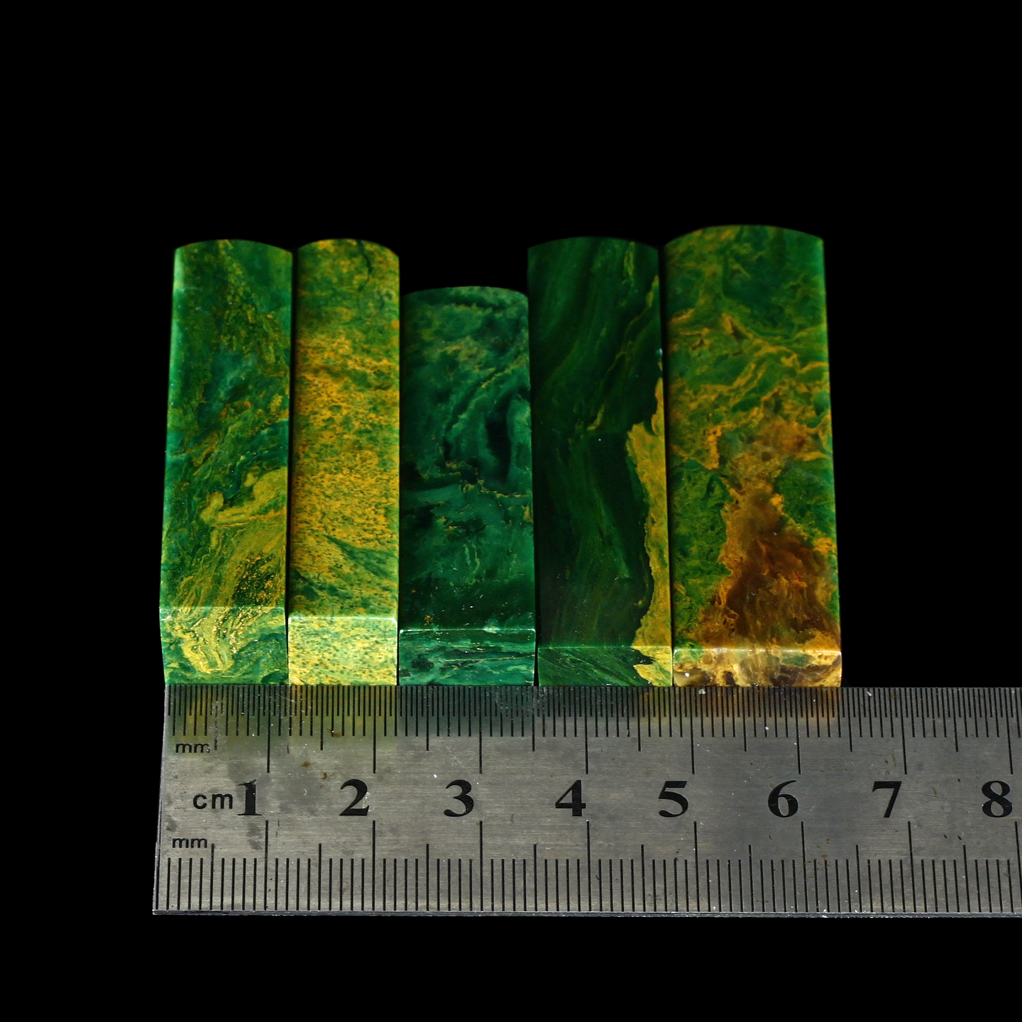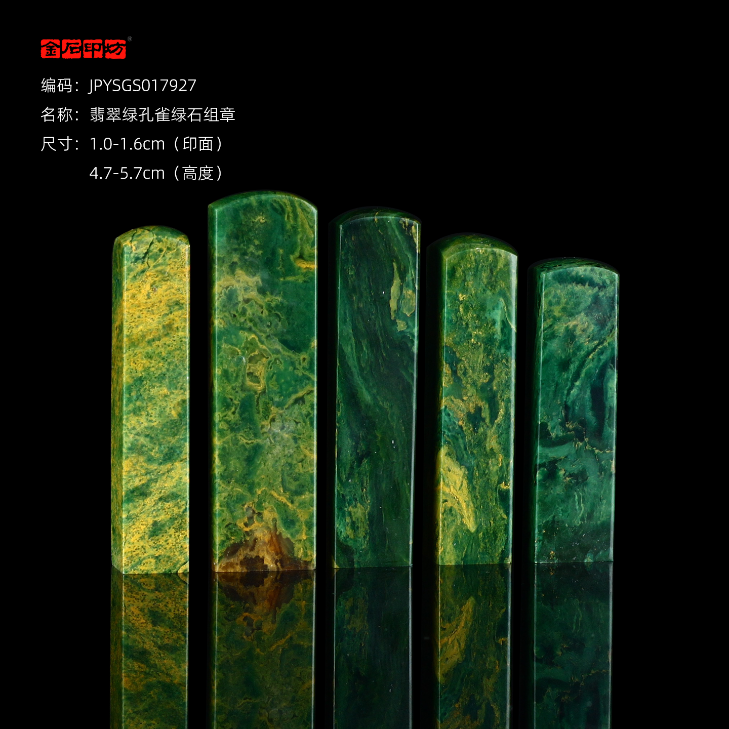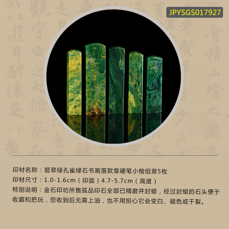 孤品17927翡翠绿孔雀绿石书画落款章硬笔小楷组章5枚-大小不一