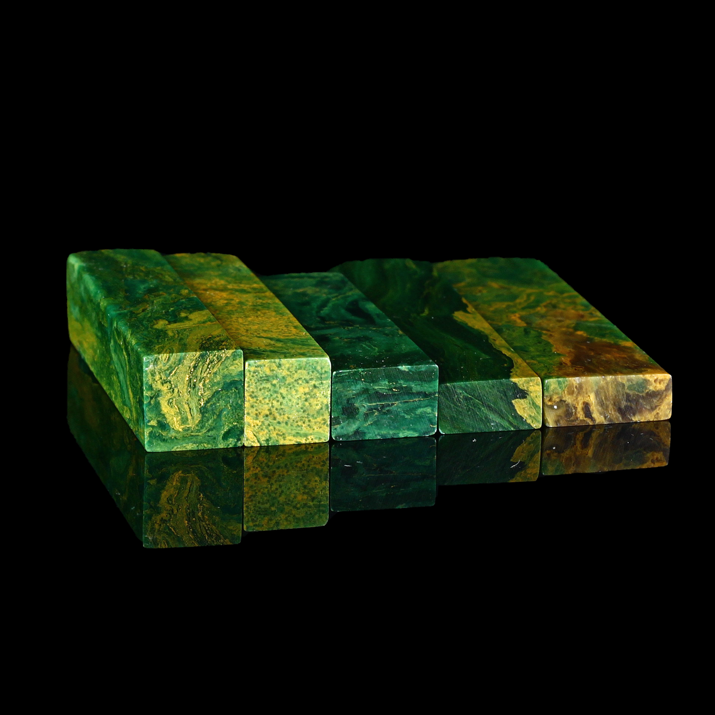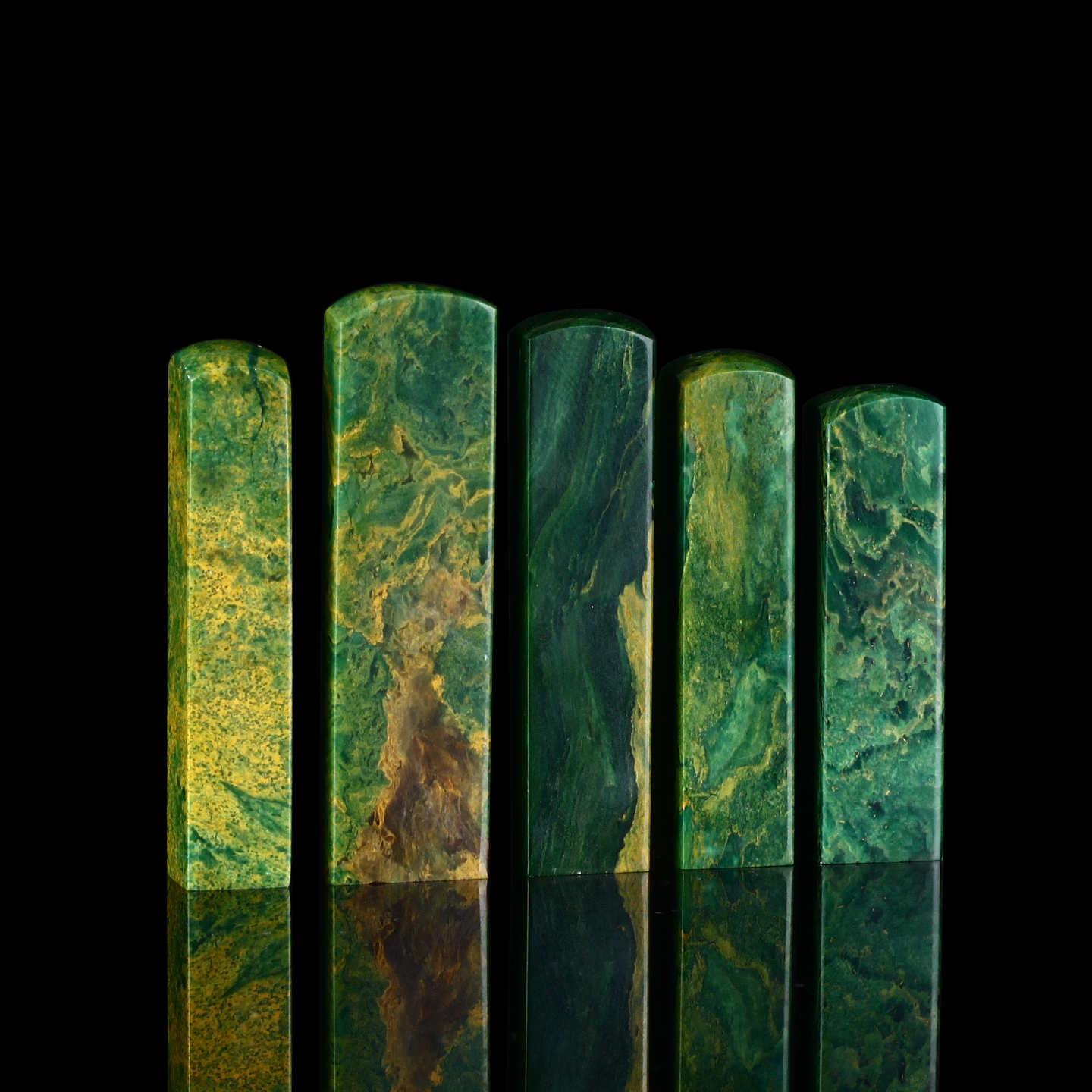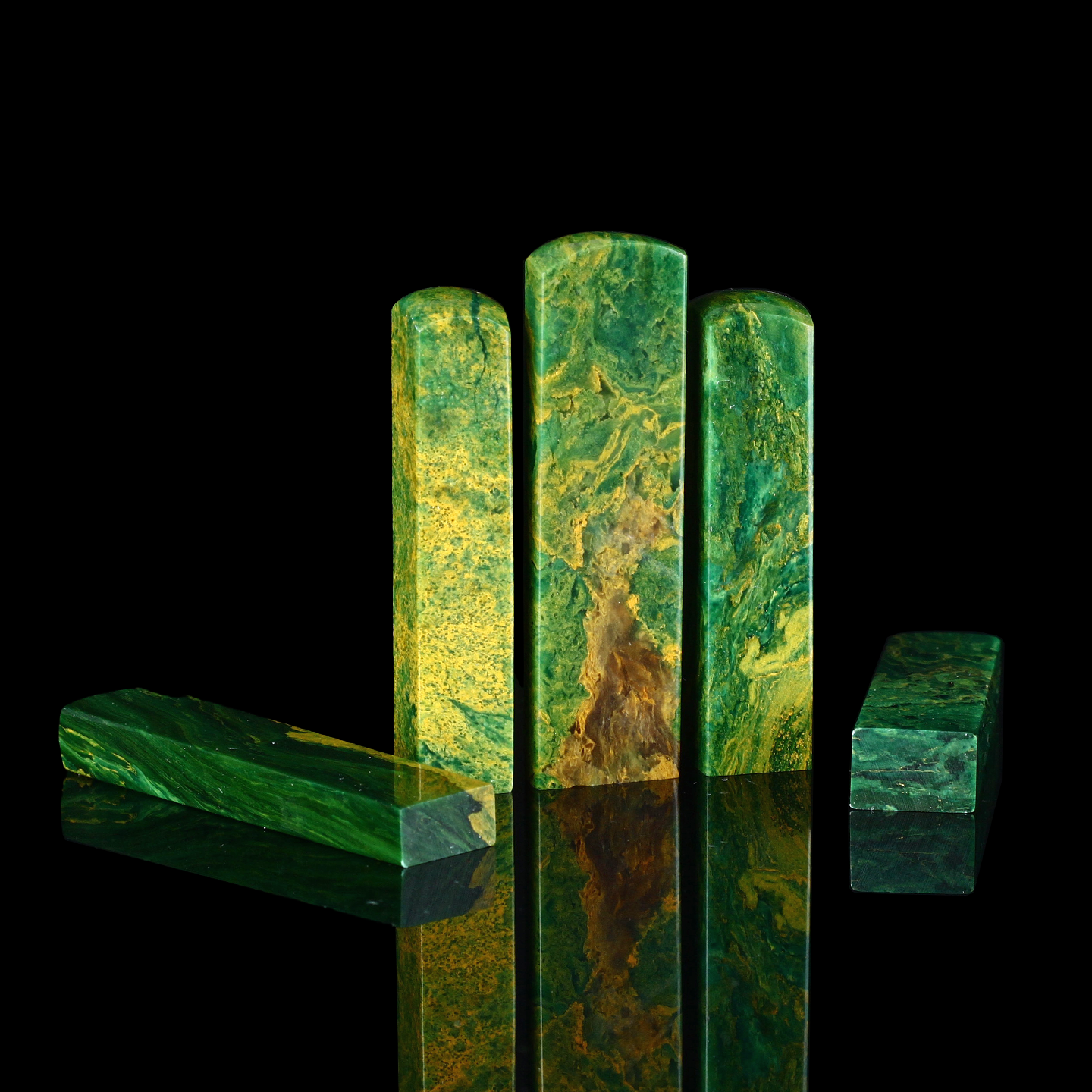 孤品17927翡翠绿孔雀绿石书画落款章硬笔小楷组章5枚-大小不一