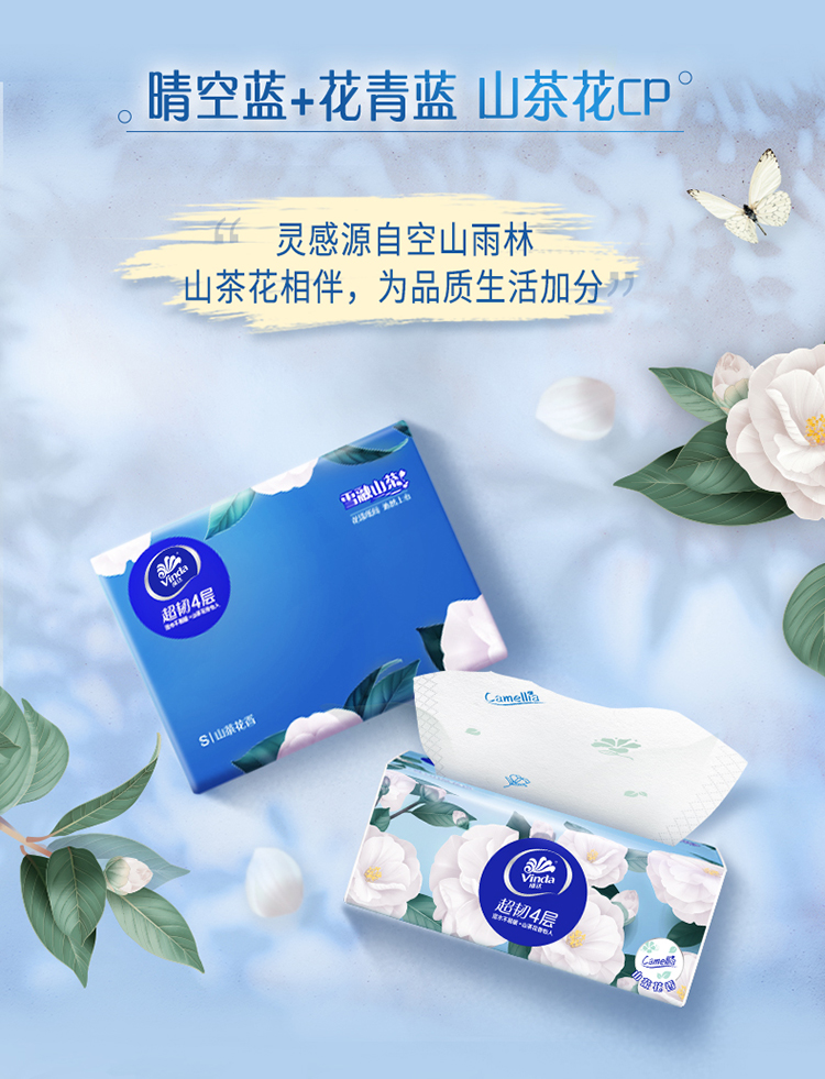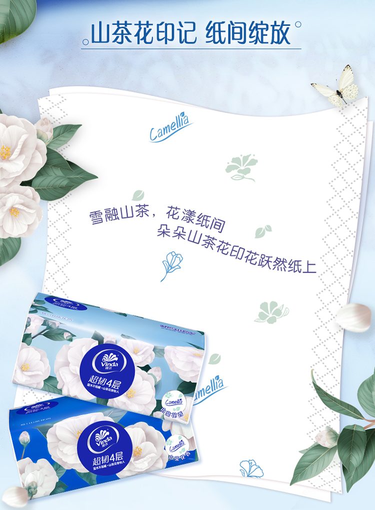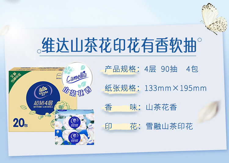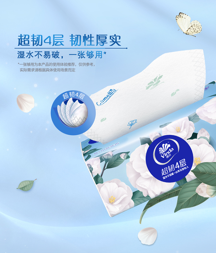 维达超韧4层山茶花印花90抽×4包整箱家庭装可湿水