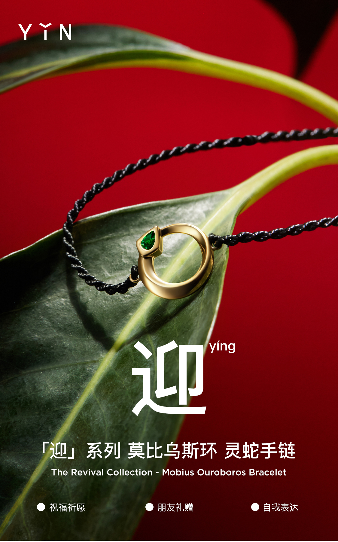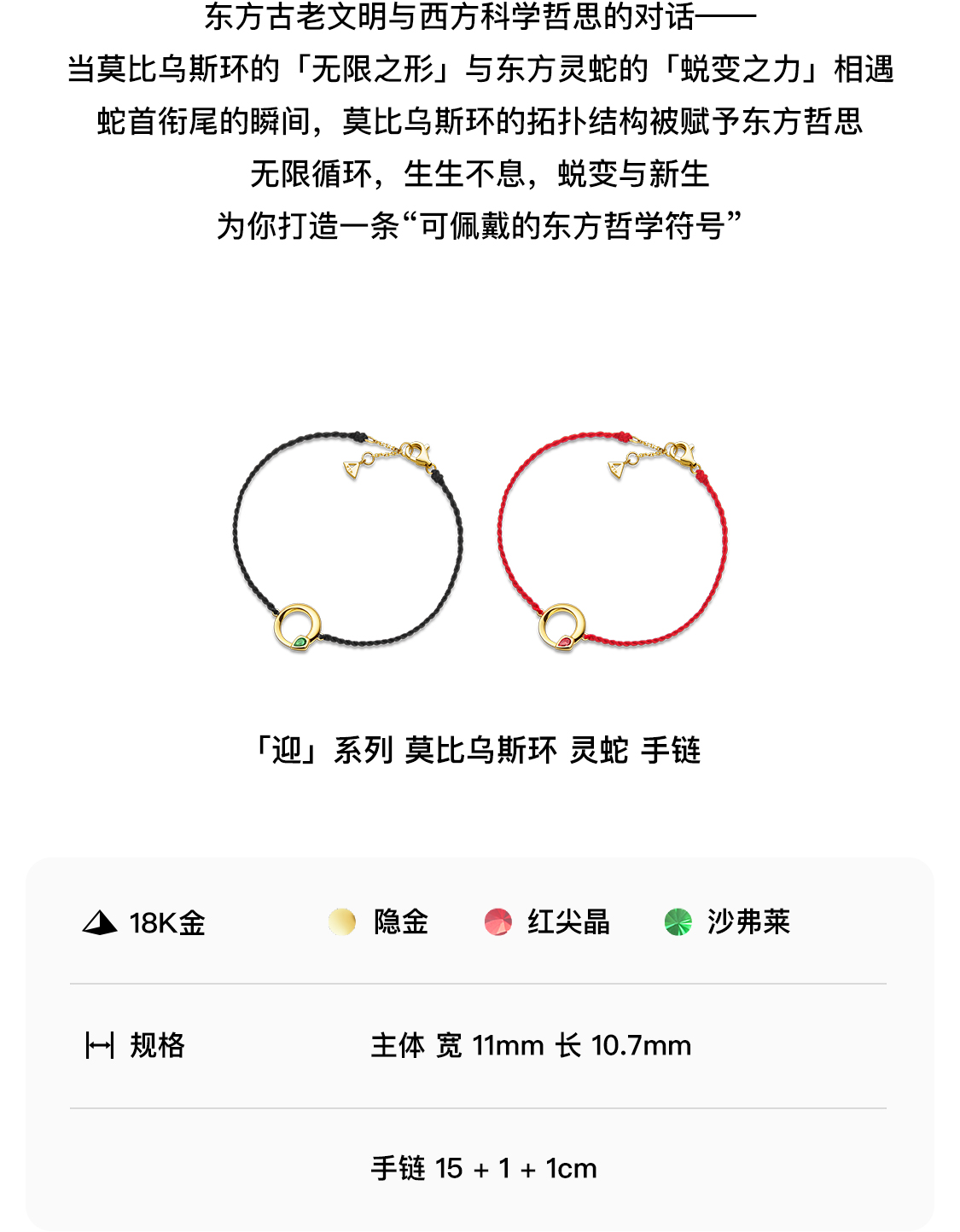 「迎」系列巳蛇肆蛇 蛇年生肖18K金手绳手链 本命年祝福送礼红绳