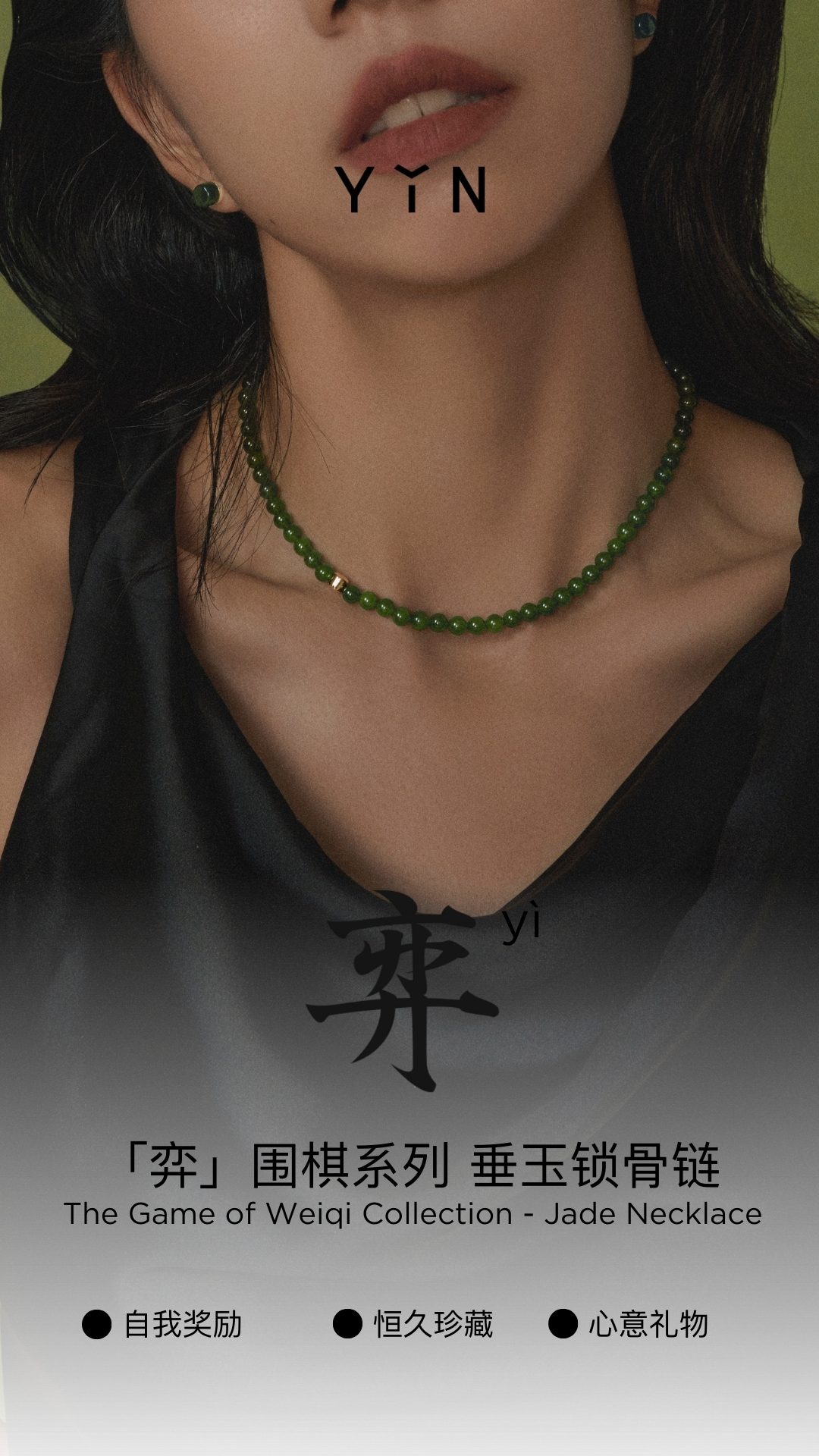 「弈」系列围棋串珠项链-金绿