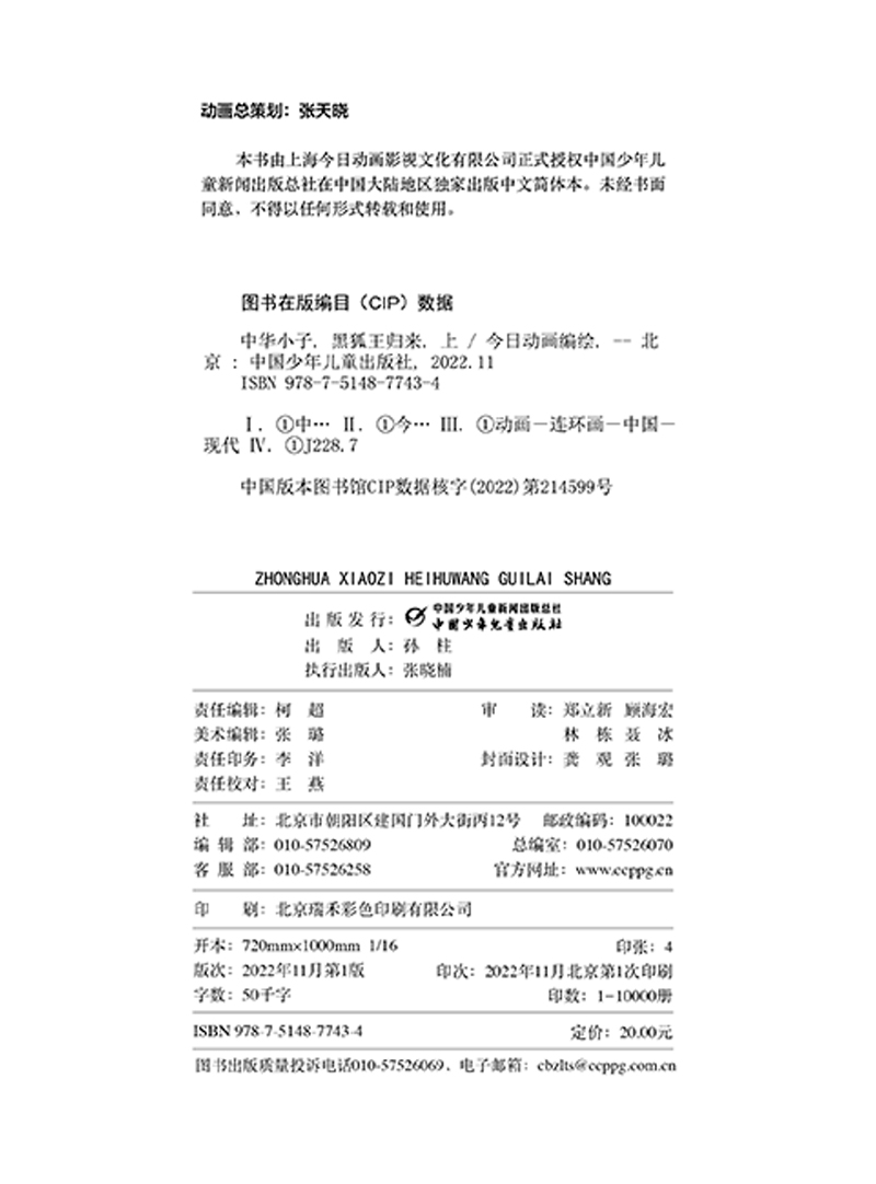 中华小子·黑狐王归来(上) 适读年龄3岁+ 经典国漫,浓郁中国特色、中国故事、中国形象、中国风格、中国气派、中国精神