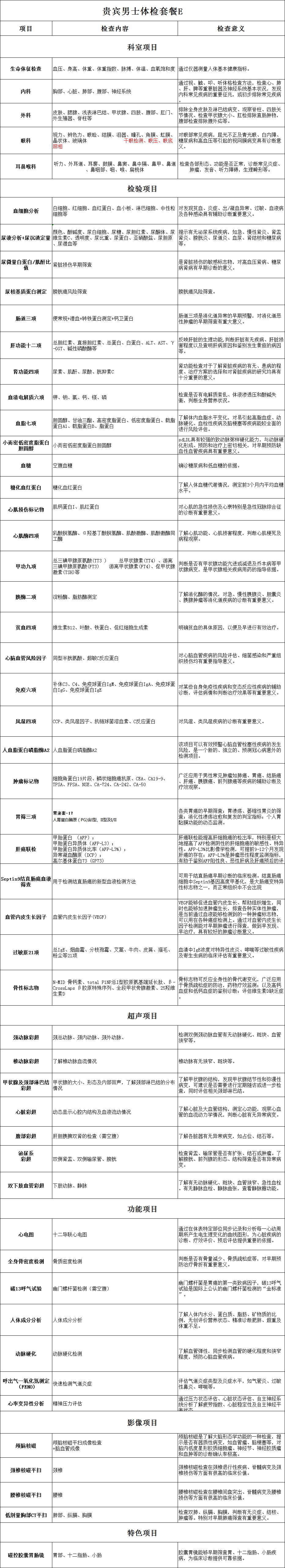 高端贵宾男士健康体检E套餐