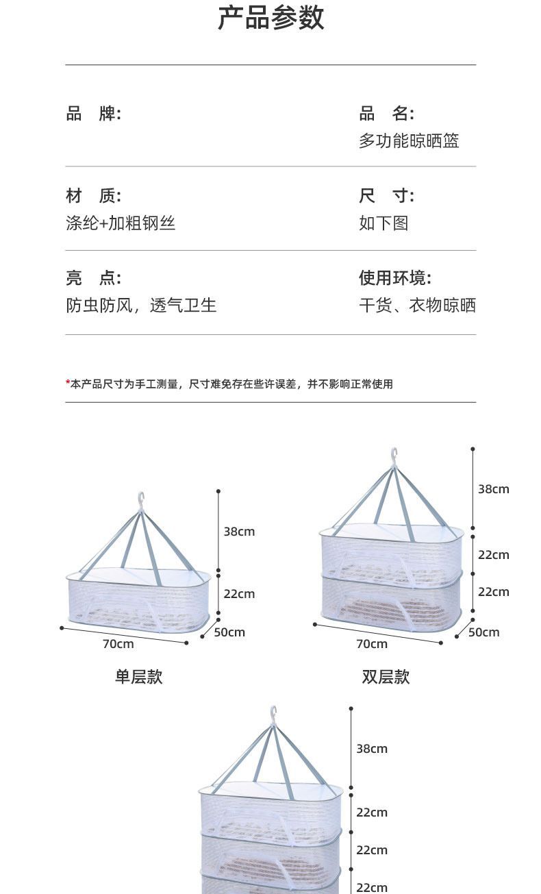 晒鱼干防苍蝇网家用阳台晾晒篮食品晒篓架晒东西的干货网晒菜神器