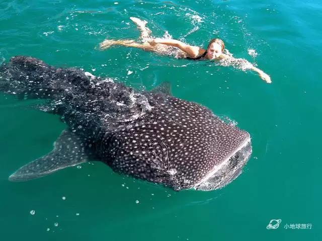 4.与鲸鲨同游:地球上最大的鱼,非投喂,完全在地球母亲的召唤下前来此地,旱鸭子也浮潜与它合影吧,这是海里的太空站,欢迎宇航员前来登陆。 |