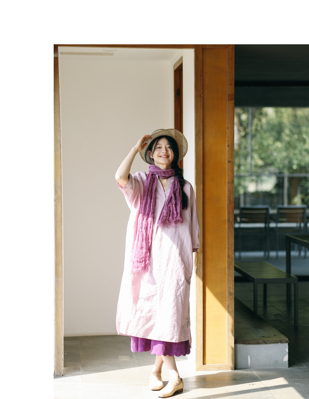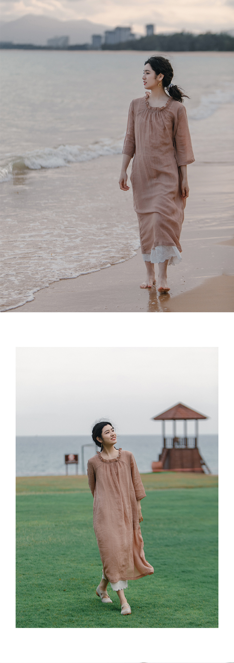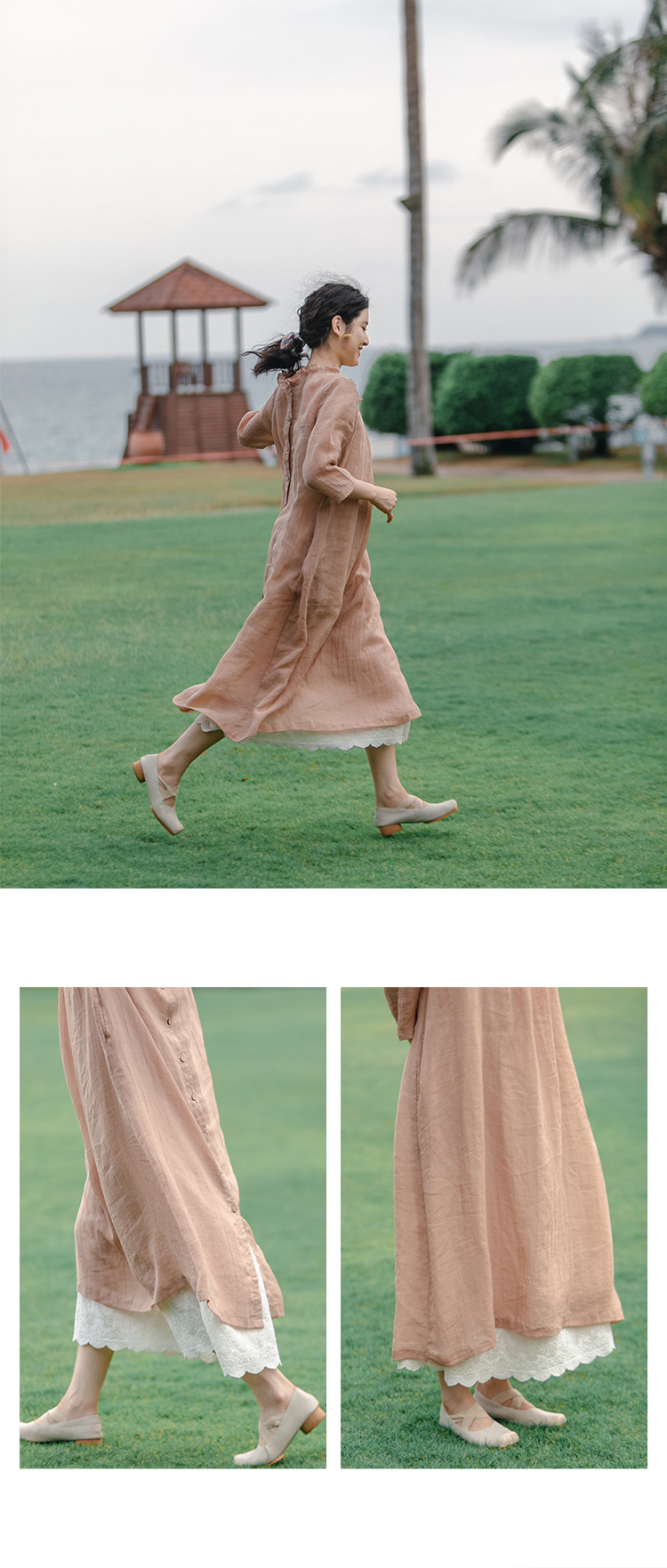 以天然亚麻为载体,融合热烈色彩与自在剪裁为身在城市、心怀远方的女性提供兼具美学与舒适的旅行着装
