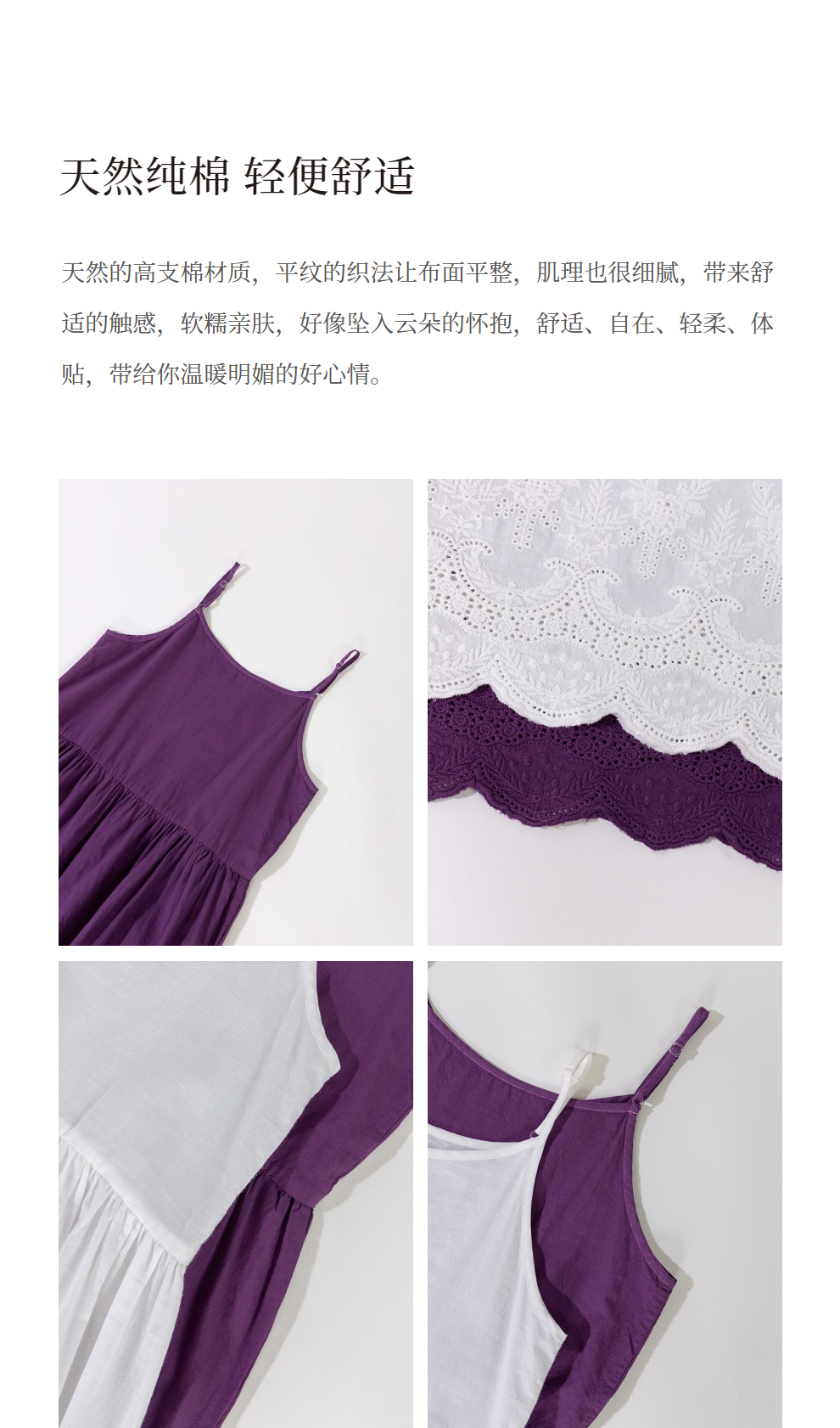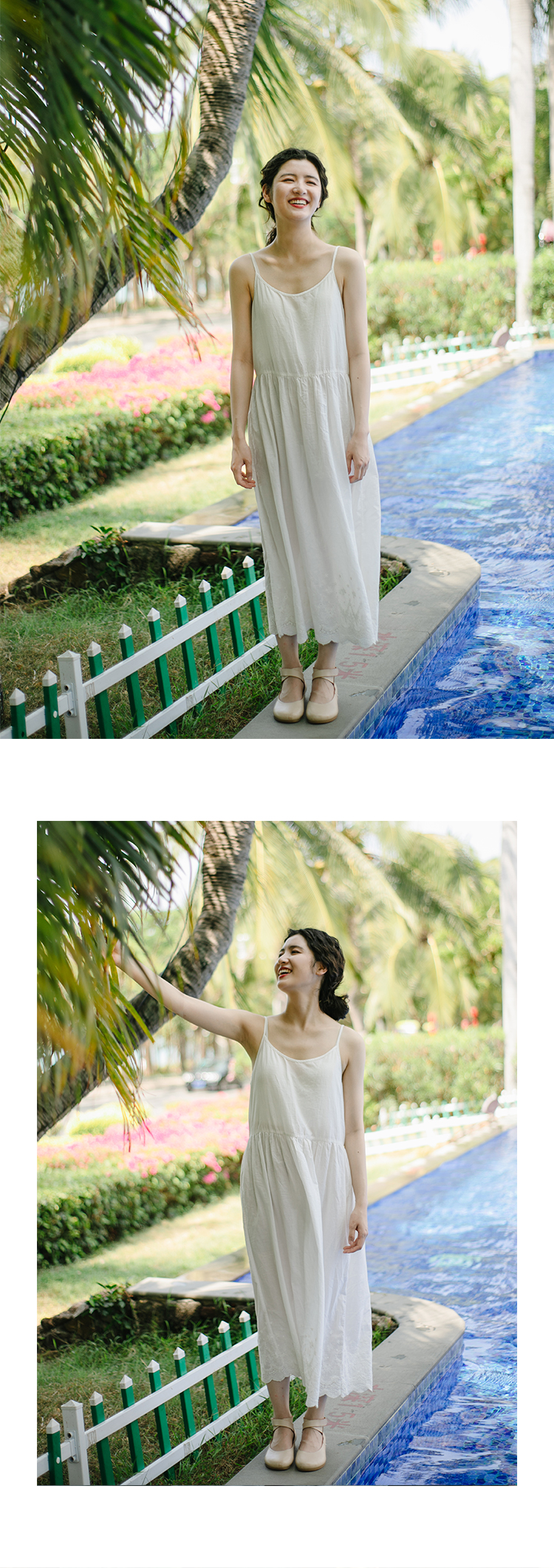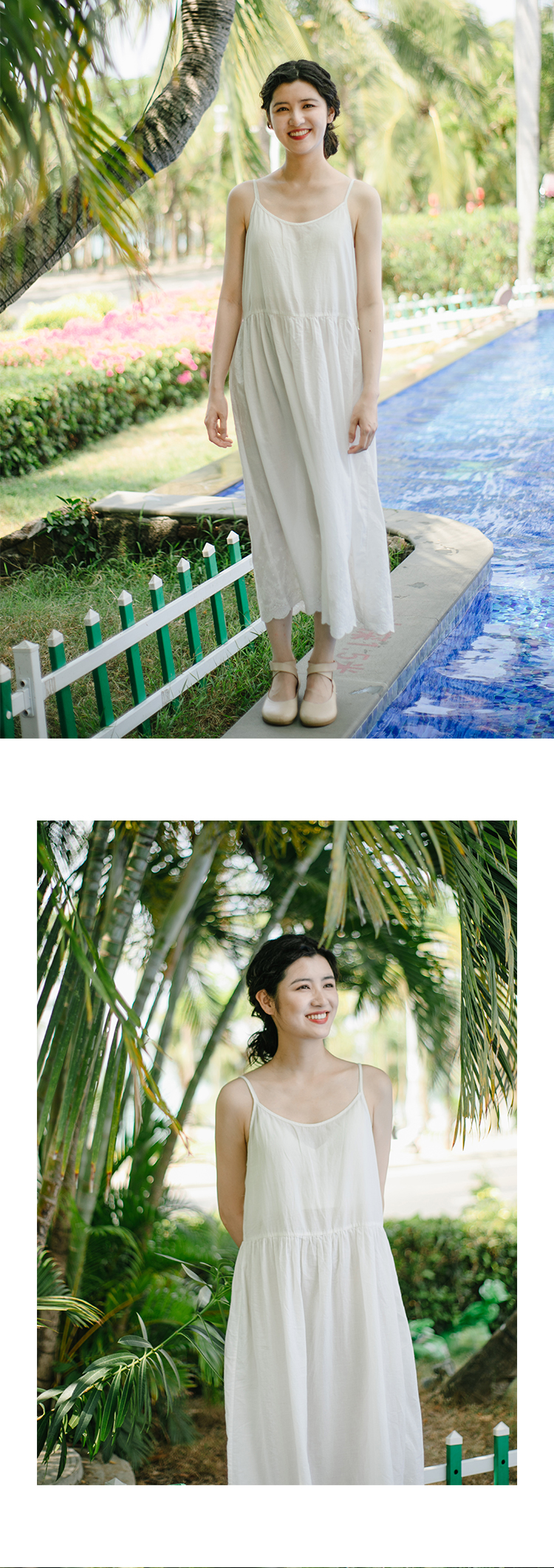 【茉莉私服】绽放281朵/白色纯棉蕾丝下摆连衣裙叠穿打底吊带长裙