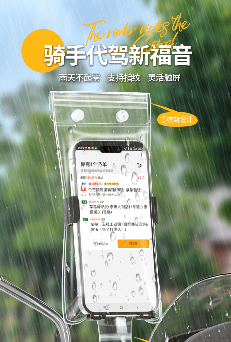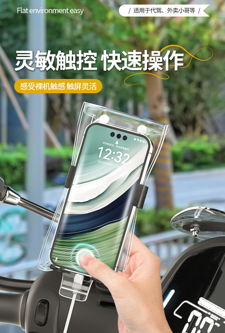 手机防水袋 高清可充电 触屏支架电瓶车骑手专用 固定防雨罩手机防雨套/个
