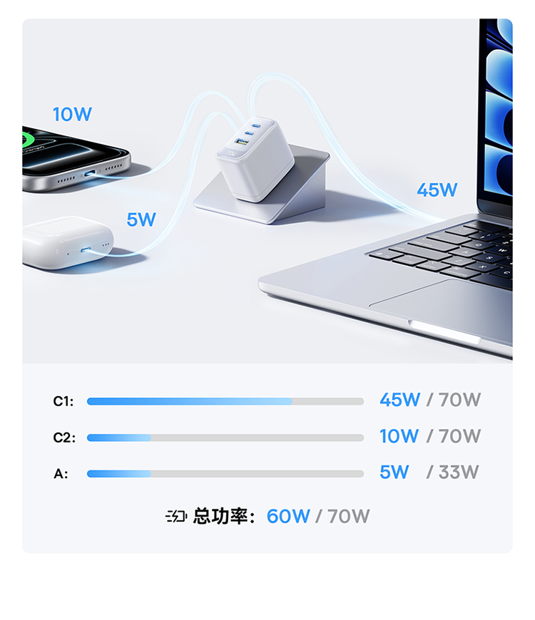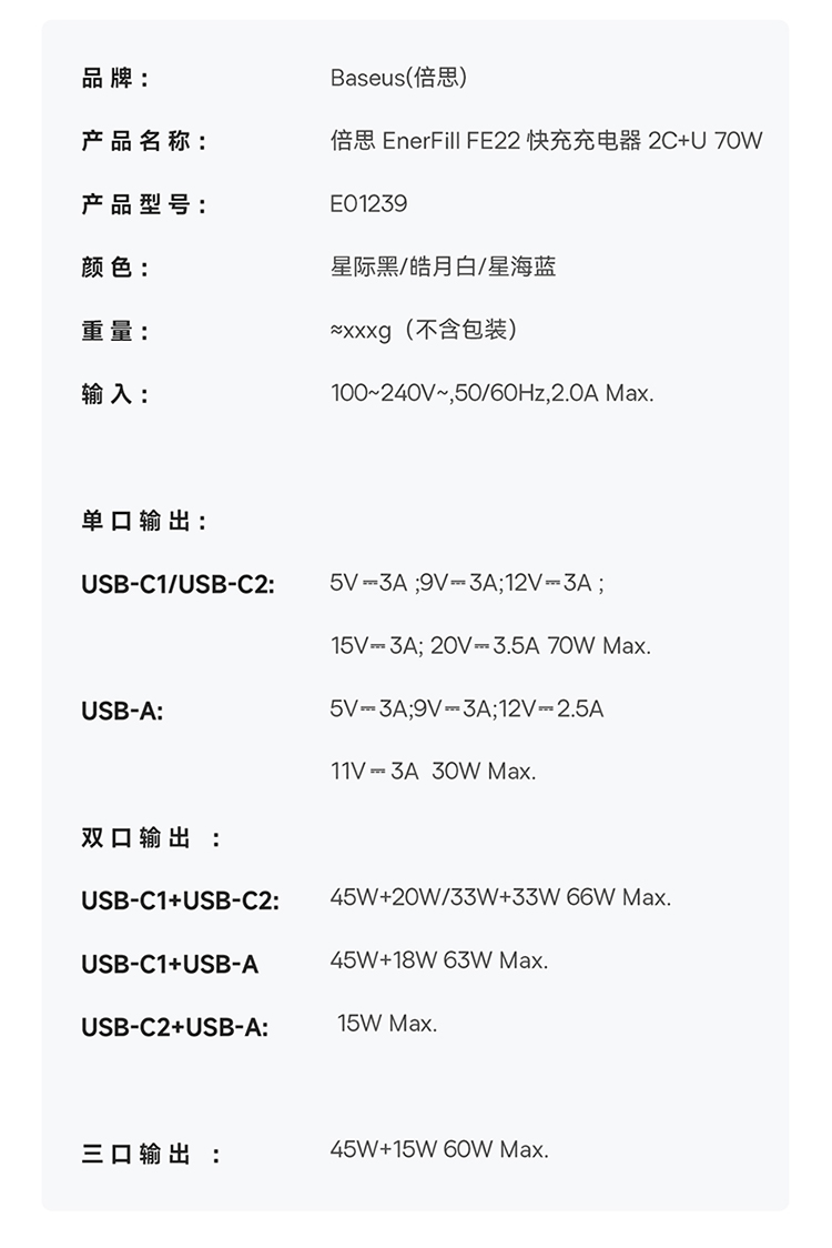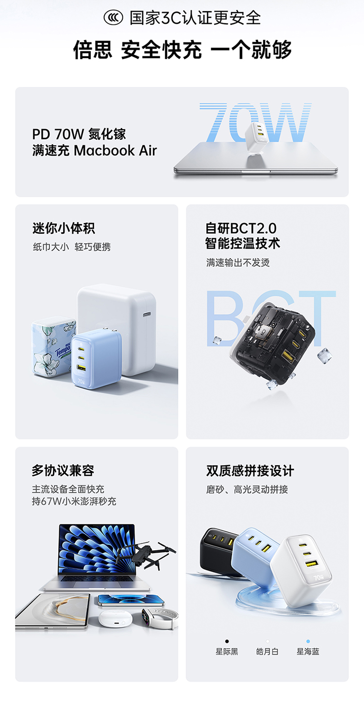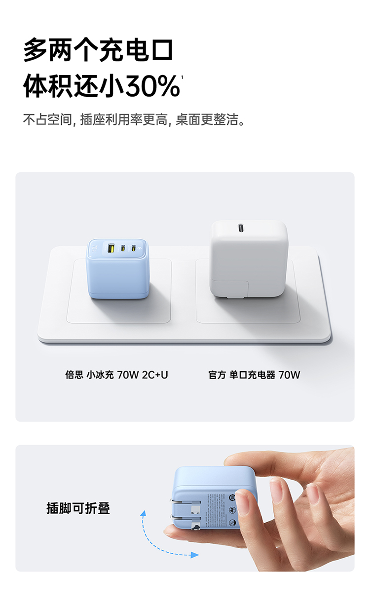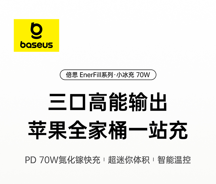【新品上新】倍思 EnerFill 小冰充FE22 快充充电器 2C+U 70/100W
