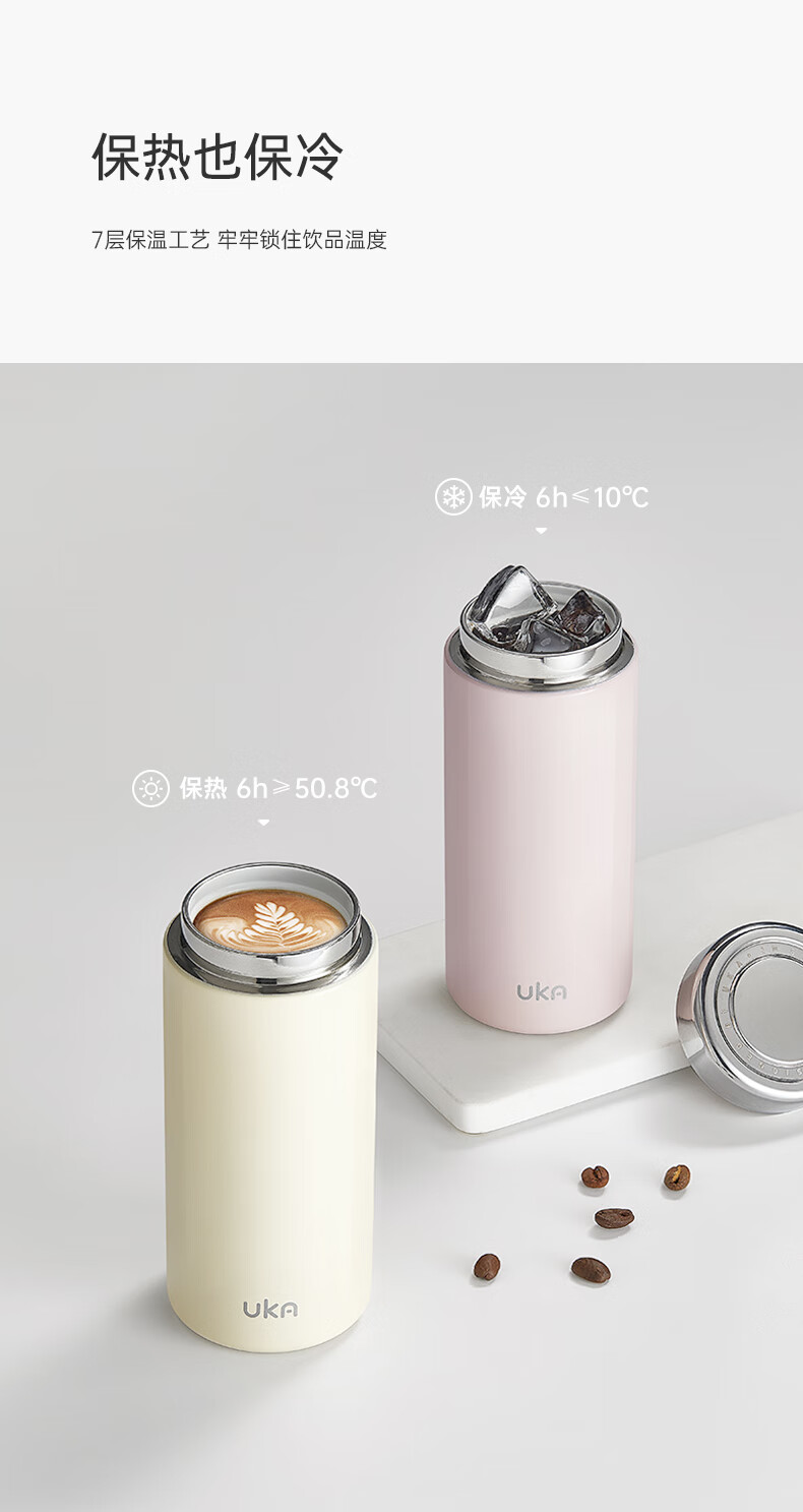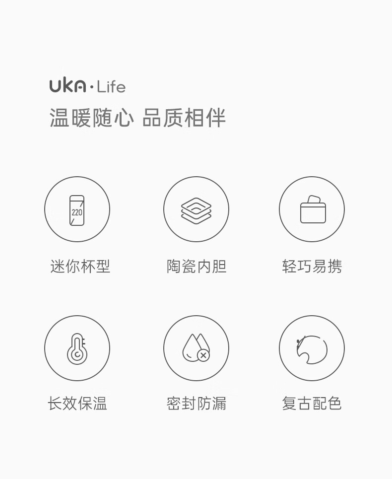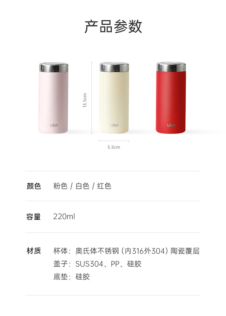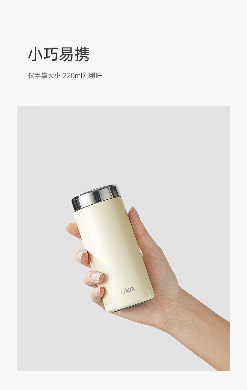 【6F】多样屋UKA口袋杯迷你保温杯女士小容量陶瓷内胆便携随手水杯 220ml (陶瓷覆层 6H保温)
