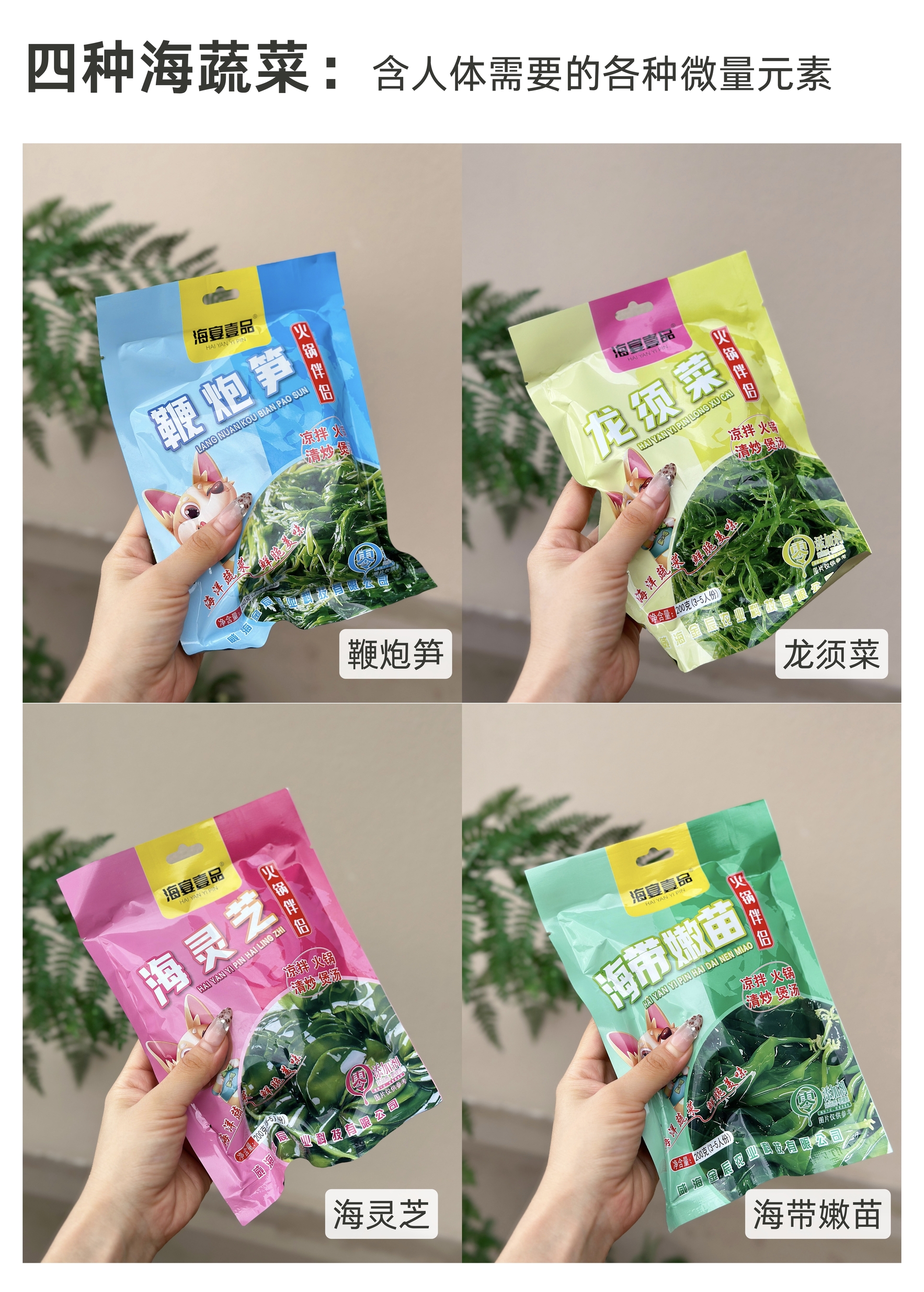 拼团|鞭炮笋/龙须菜/海带苗/海灵芝 鲜嫩爽滑 提鲜增味 百搭好吃 200g/250g 4袋装