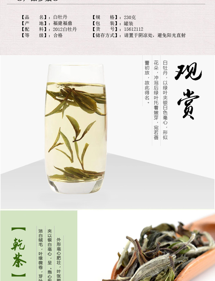 鼎名 老白茶白牡丹 原茶2012年 230g/罐