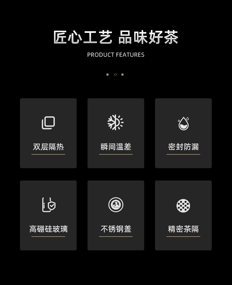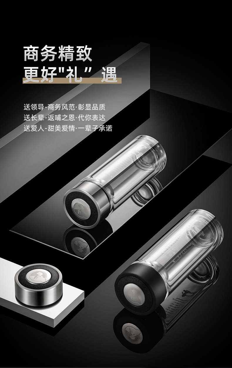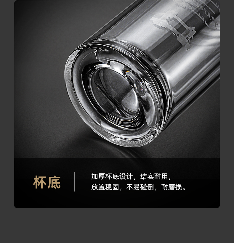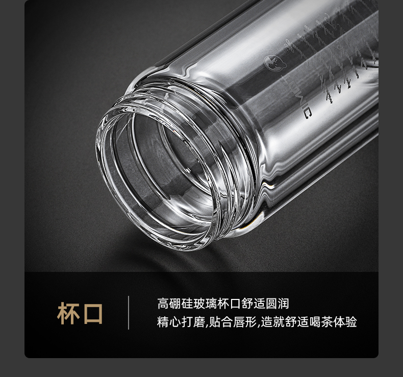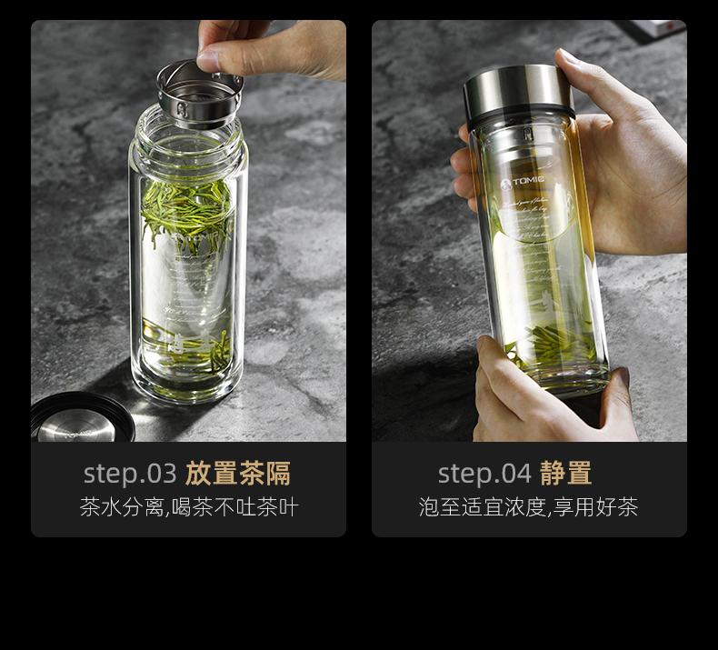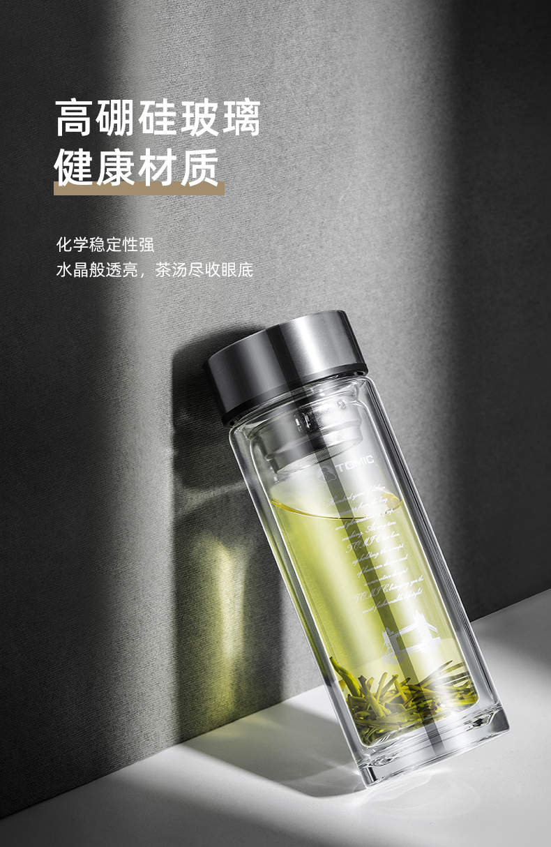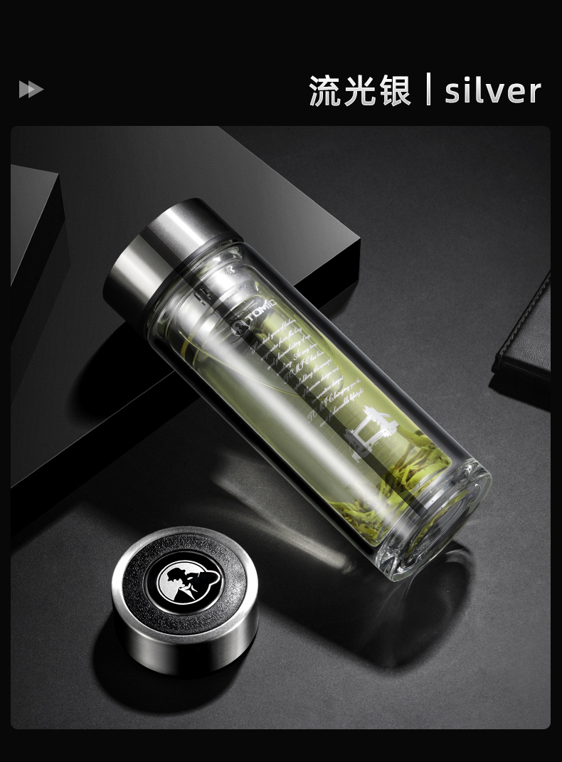特美刻(TOMIC)双层玻璃杯男女士家用高档带过滤网茶杯商务办公水杯隔热透明特美赢杯子TG82003本色360ML