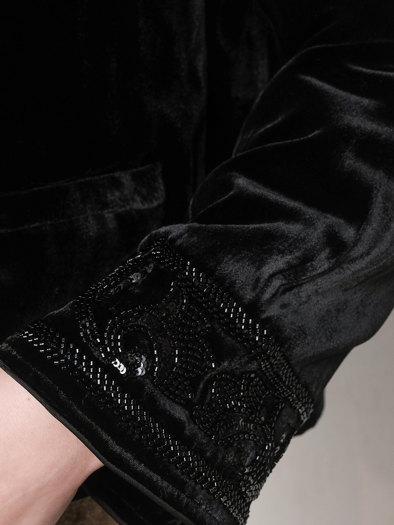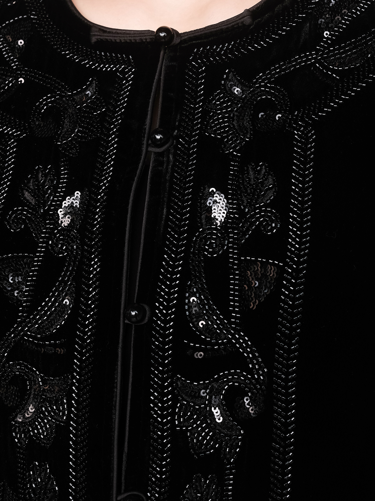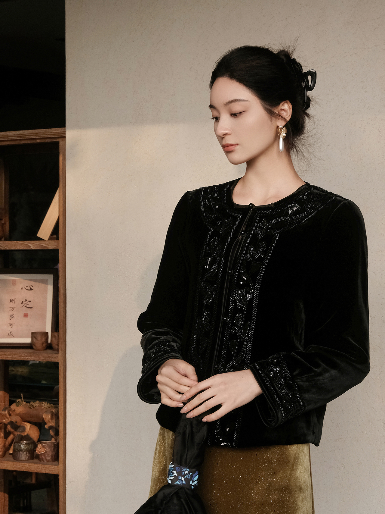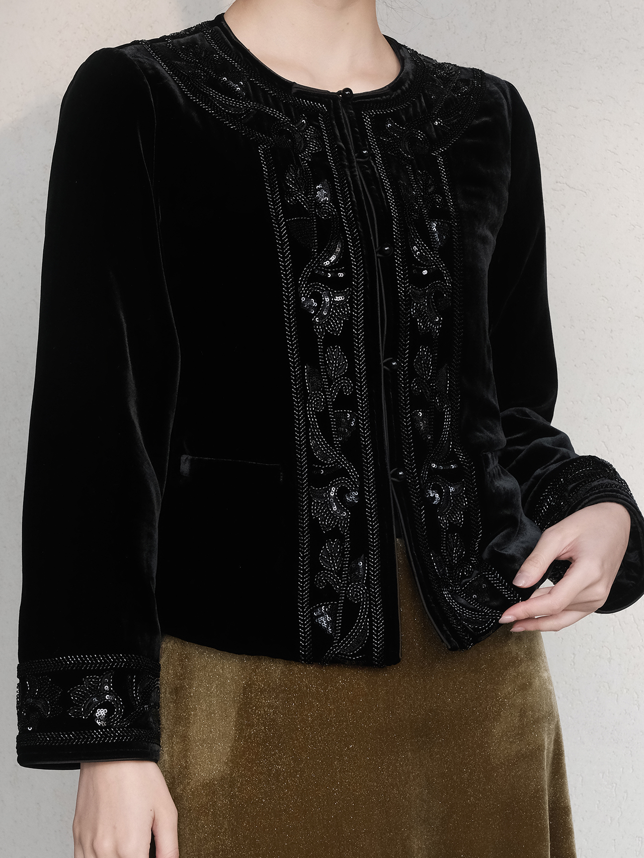 盛唐婧 | 新中式真丝绒重工钉珠对襟圆领外套
