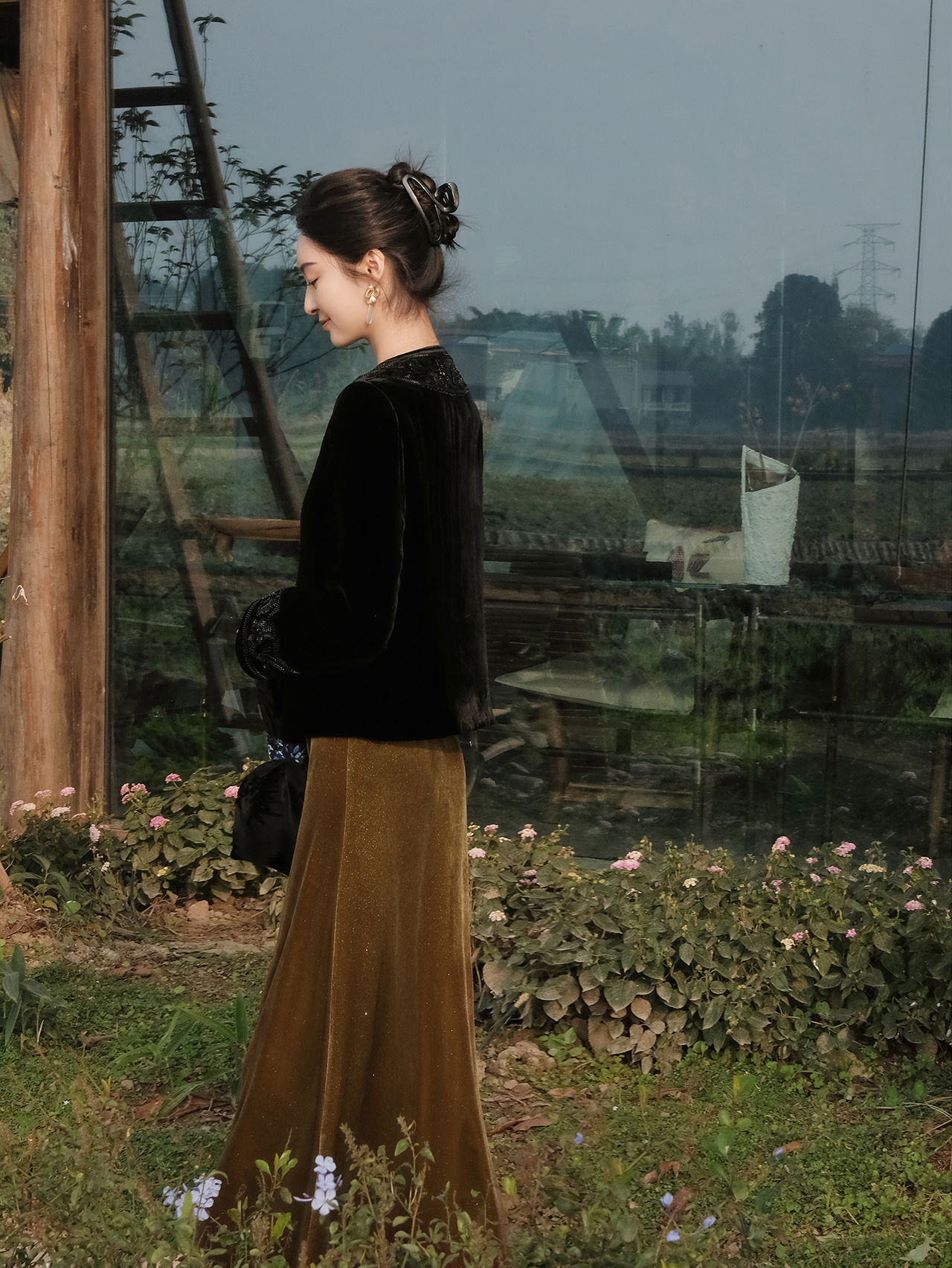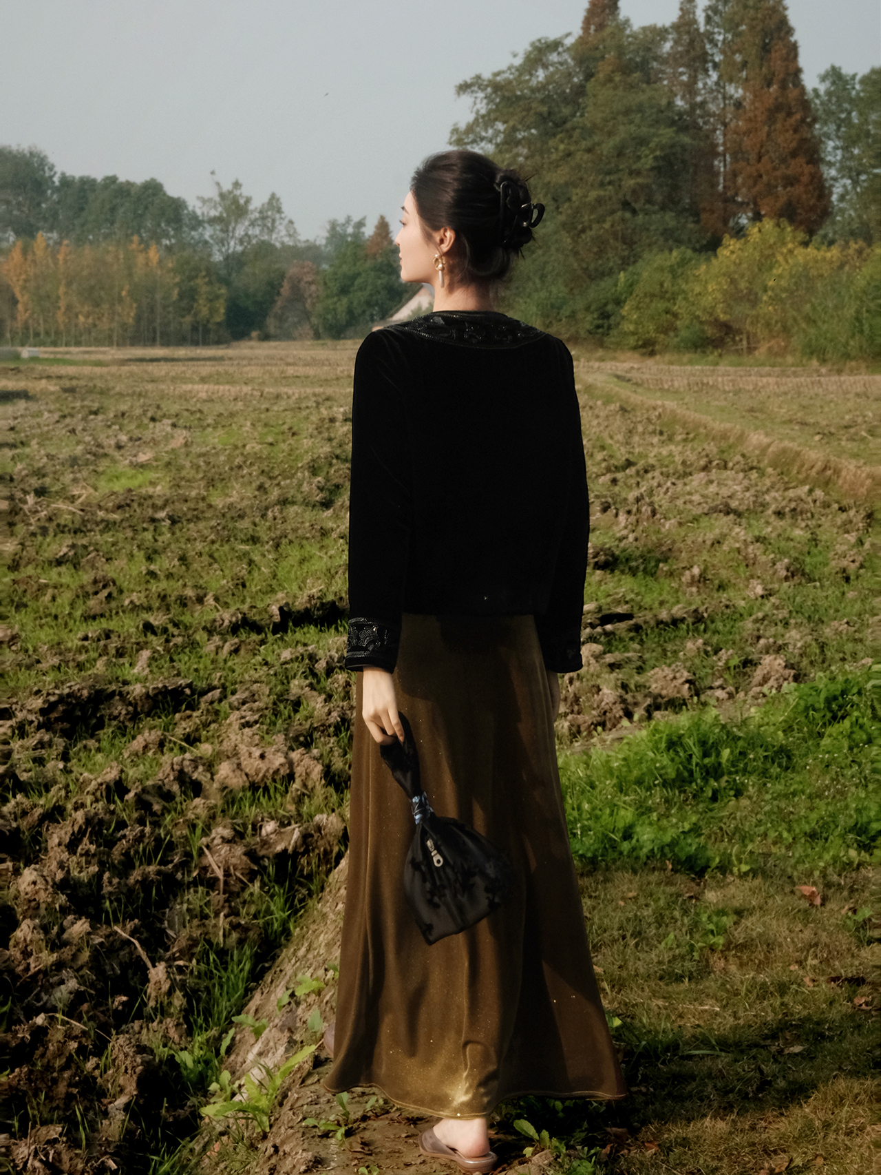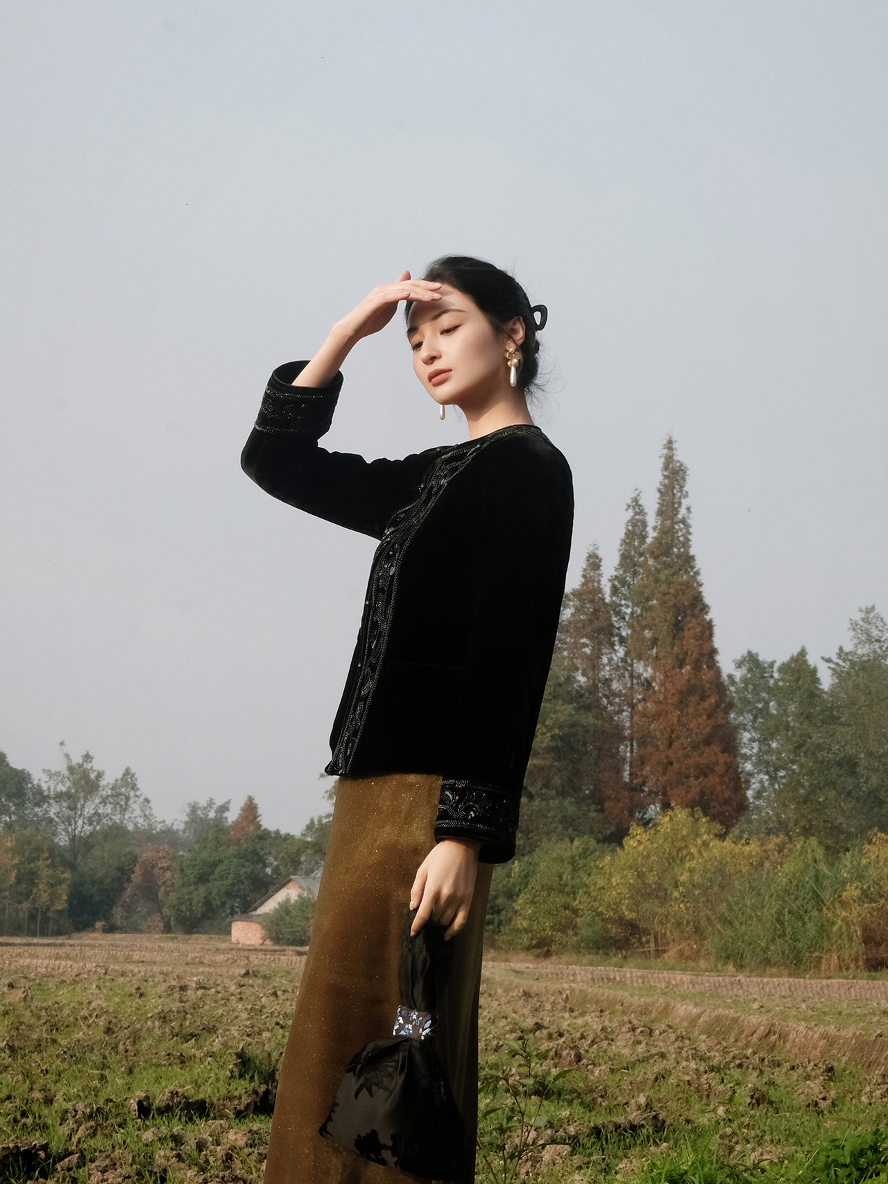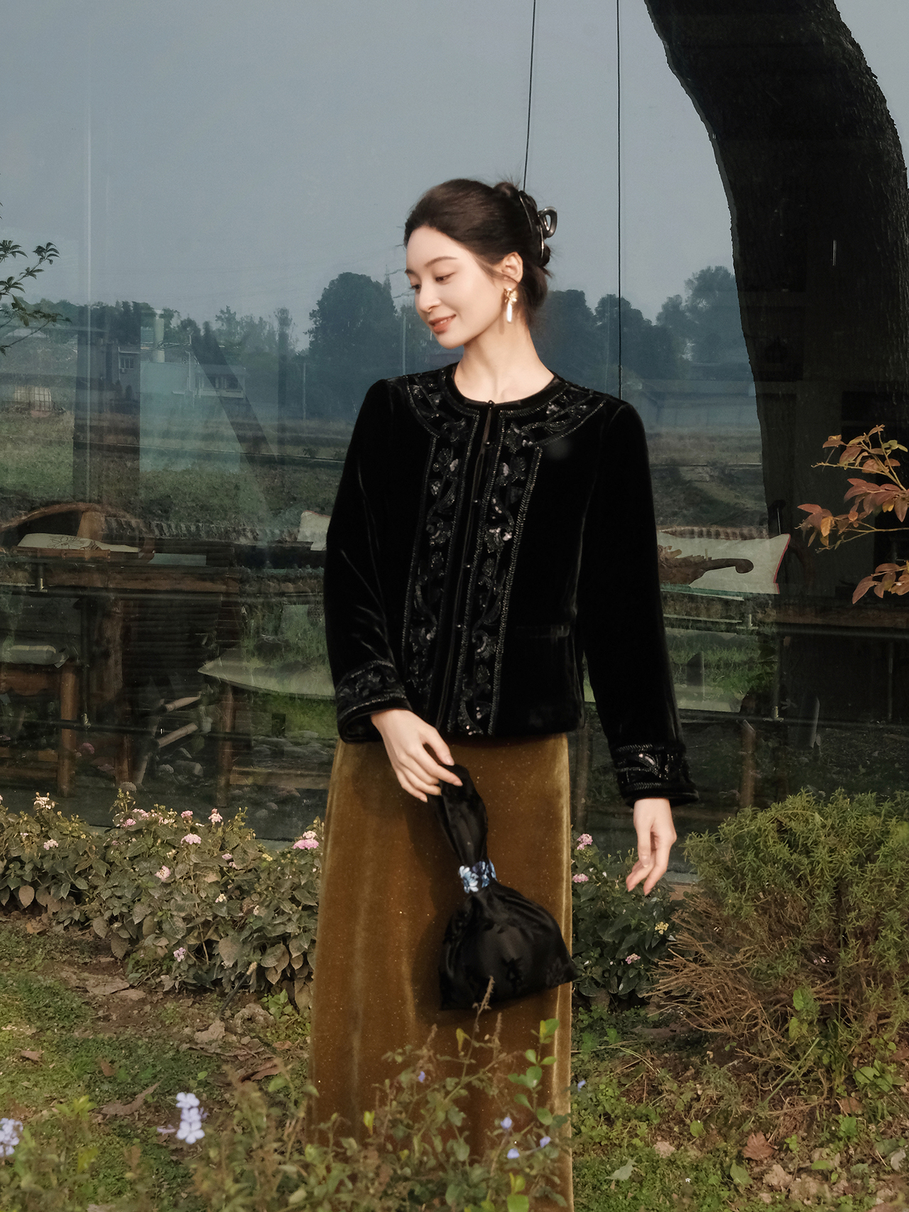 盛唐婧 | 新中式真丝绒重工钉珠对襟圆领外套