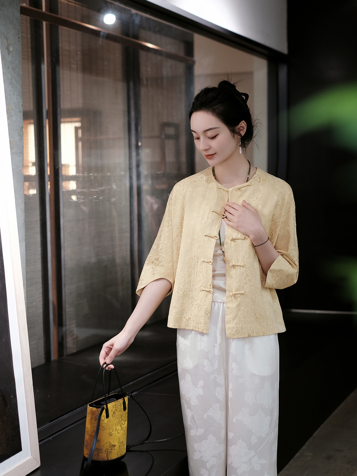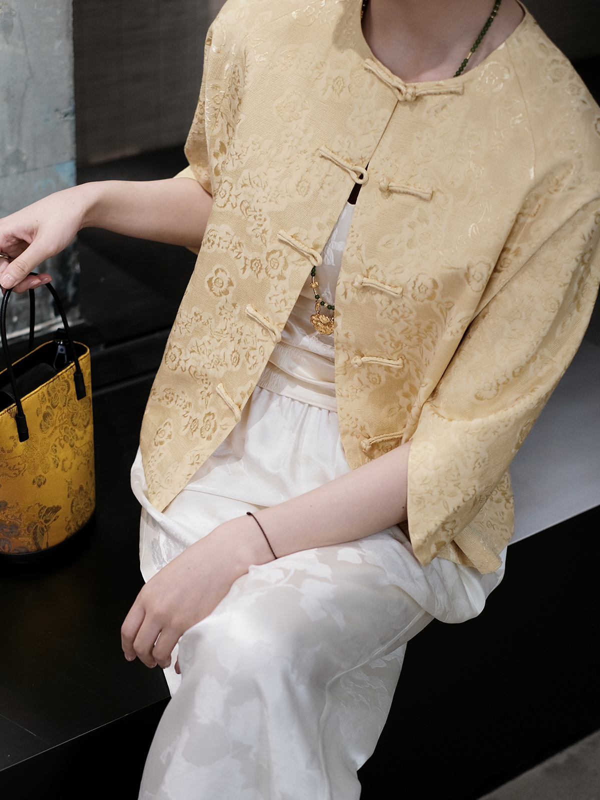 盛唐婧 |丝麻提花圆领小外套-鹅黄