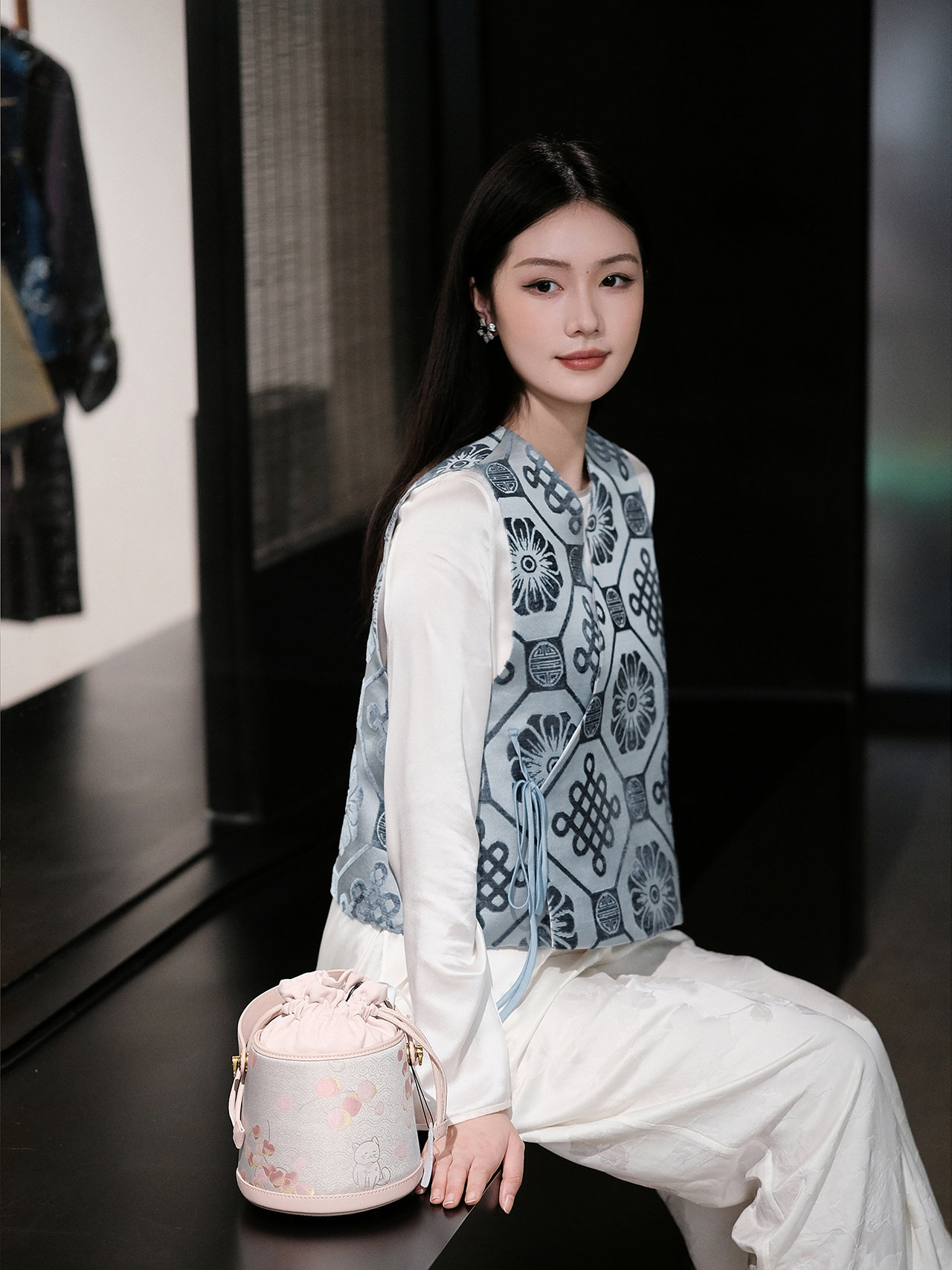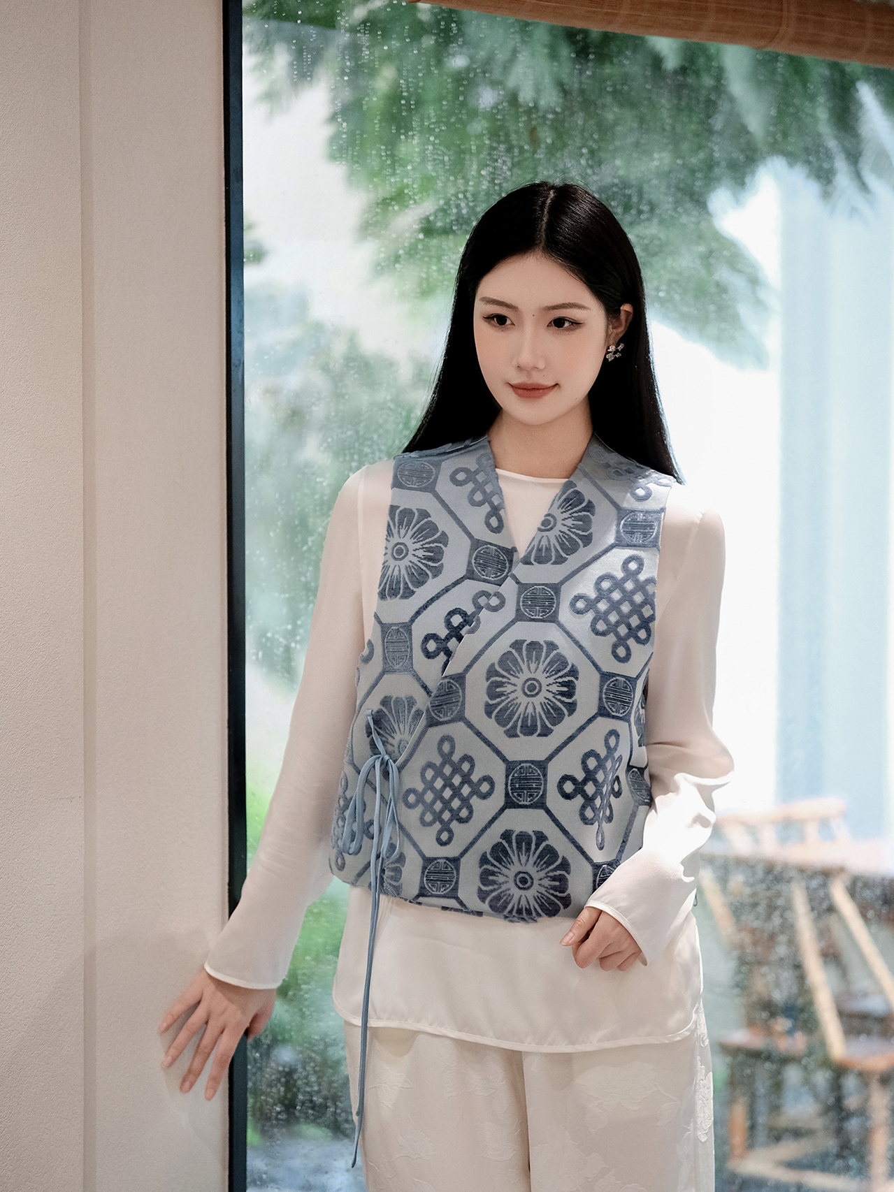 盛唐牡丹 | 吉祥结真丝漳缎系带马甲