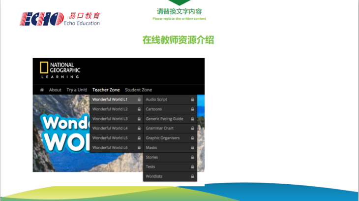 美国国家地理学习(National Geographic Learning)是圣智集团(Cengage)旗下一员,是全球领先的英语语言教学内容提供商,产品涵盖英语语言学习、文学、科学、社会学研究等各个领域,基于与美国国家地理学会,以及和TED建立的独家合作伙伴关系,通过使用优质的影音资料、文字内容、图片等资源为全球英语学习者提供从幼儿到成人以及学术教学的全面解决方案。美国国家地理学习的产品分享选自美国《国家地理》的真实故事,通过令人叹为观止的影音资料和精彩的文字内容帮助学习者领略探险家、科学家、作家以及摄影师所体会到的求知之乐,享受学习的乐趣,践行“将世界带入课堂,让课堂与生活联接”的理念。