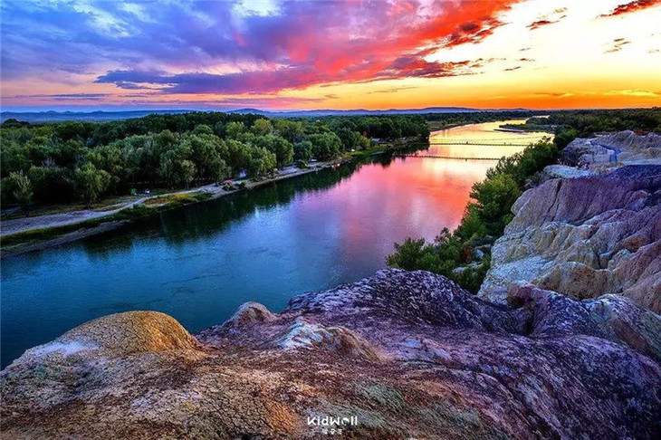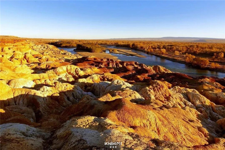 在河水的映衬和夕阳的照射下,当你走进这高低起伏的“丘陵”地带,就如同走进一个五彩斑斓梦幻般的世界。