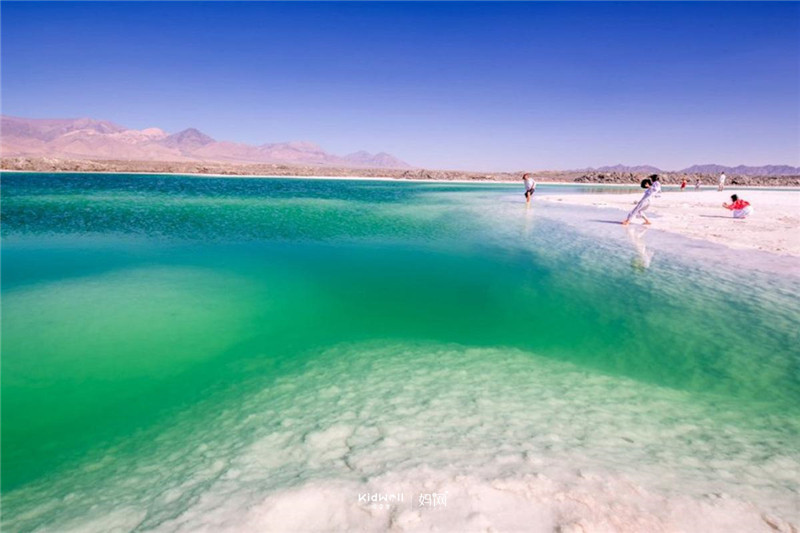 ▲茶卡盐湖是内流湖,所以踩过的地方不容易清澈,最好到无人的地方