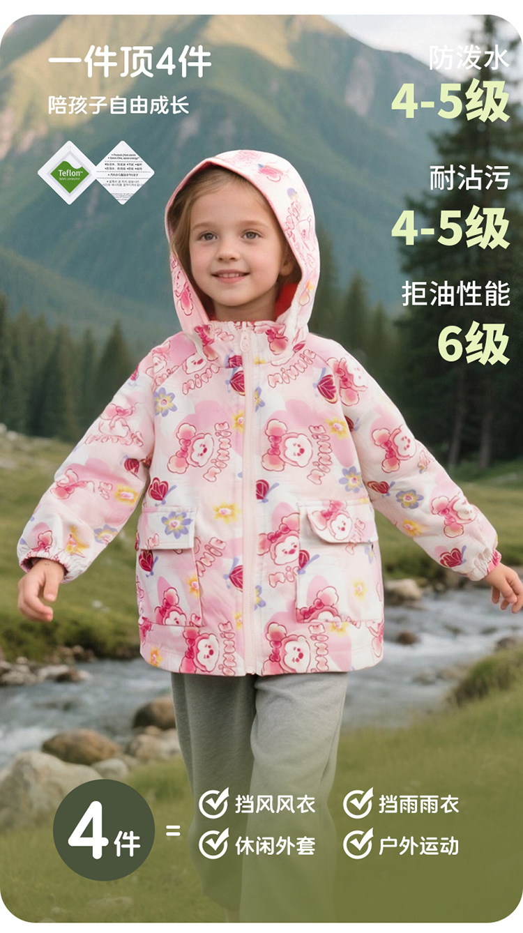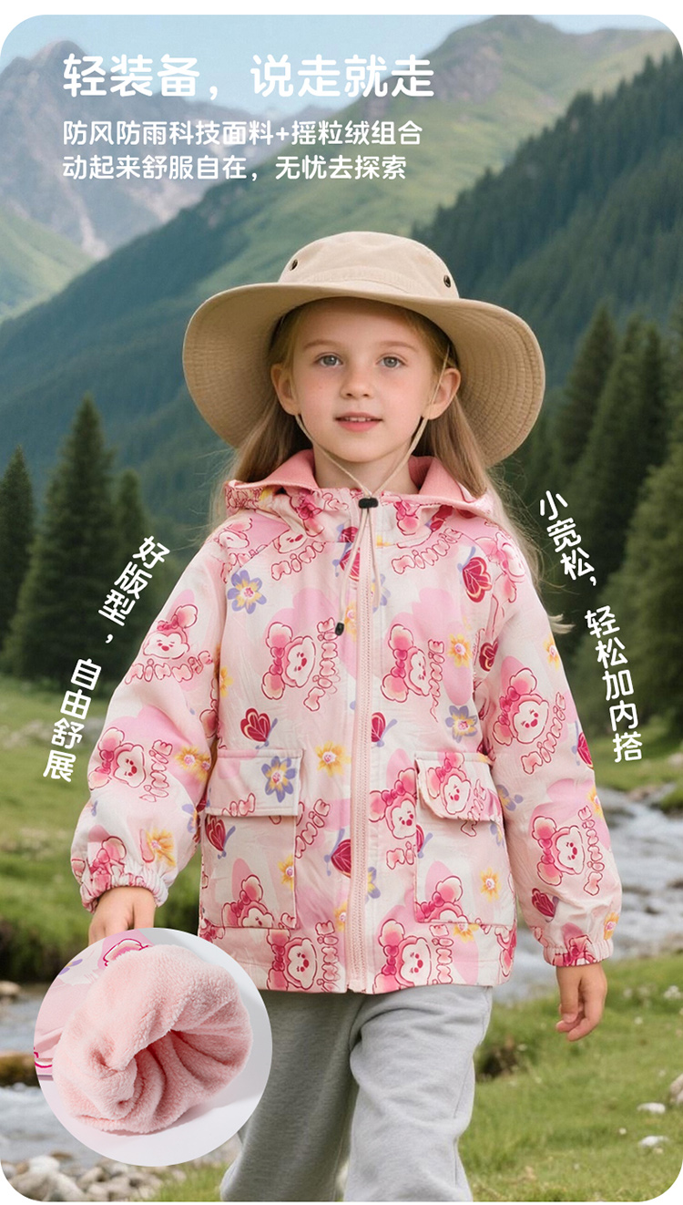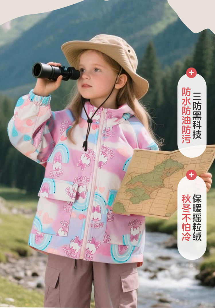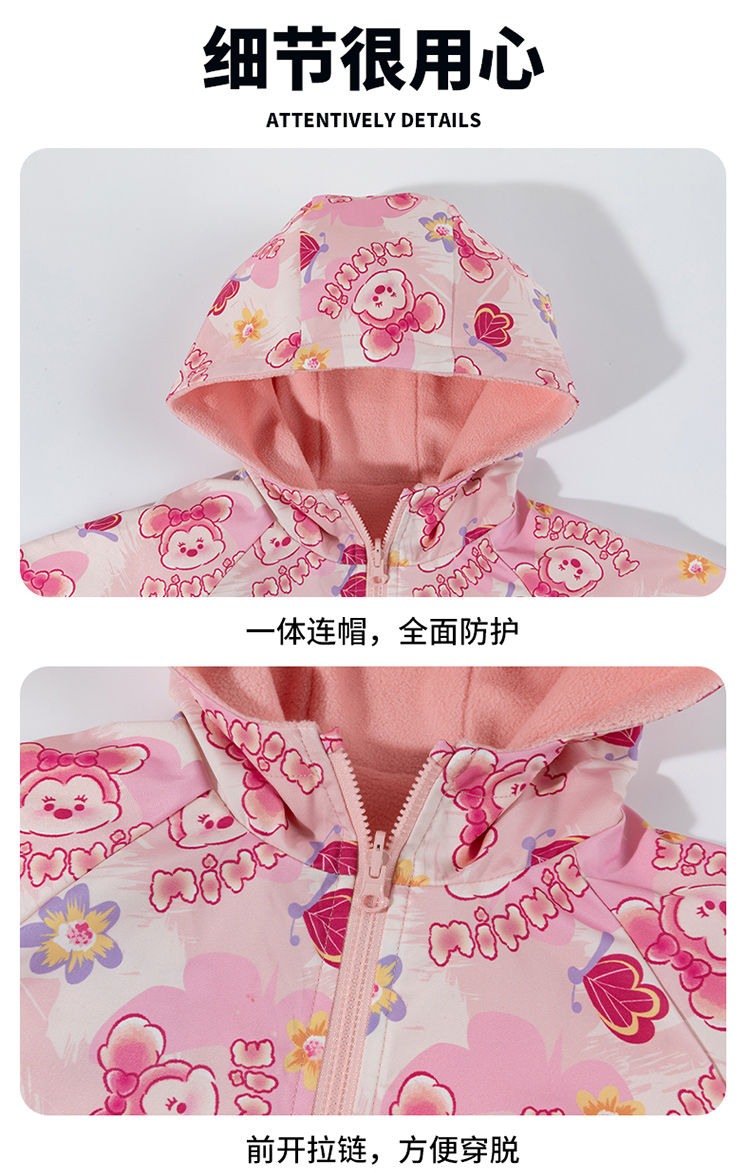 迪士尼秋冬新款加绒舒适户外外套连帽防风保暖露营风衣ZD3ES021