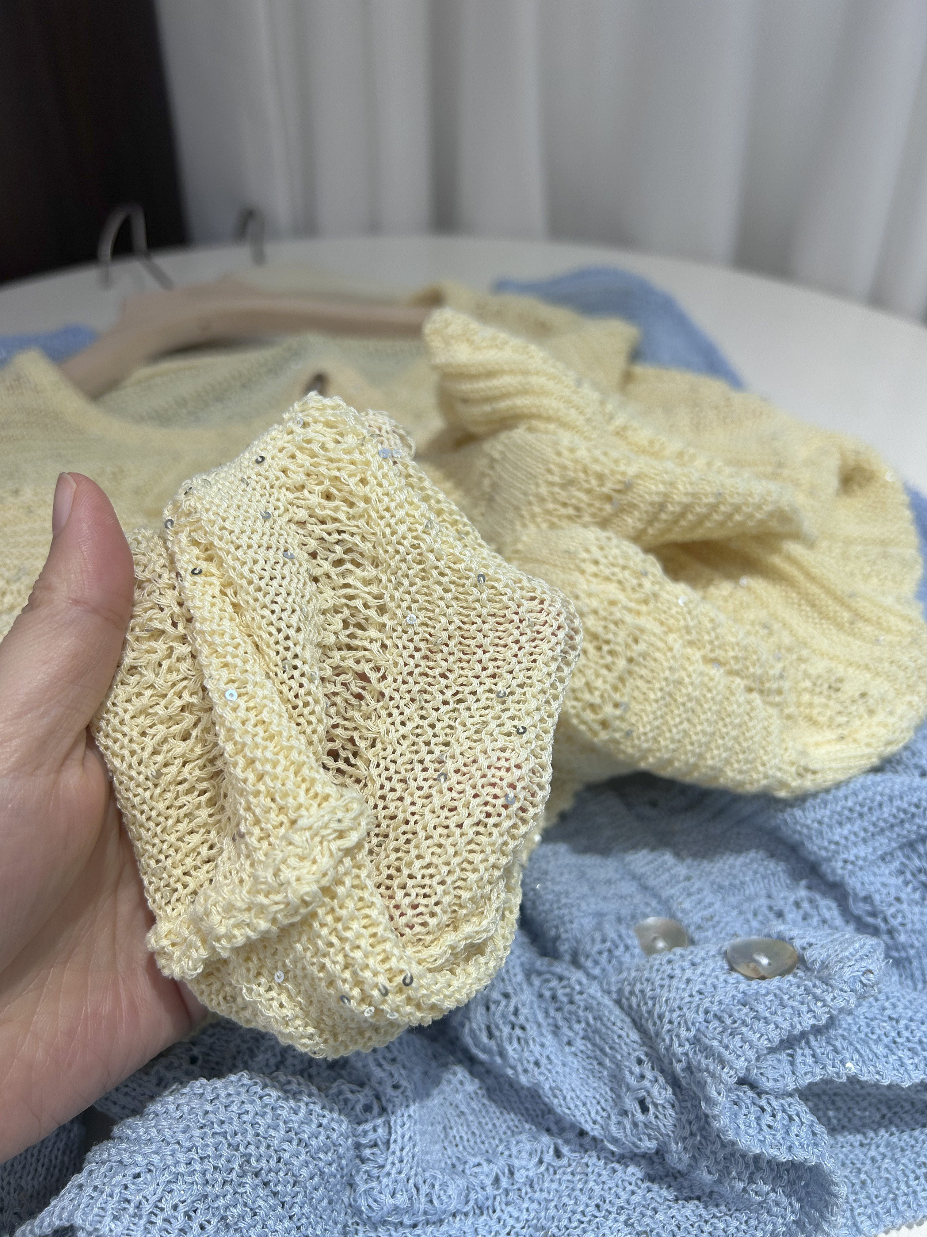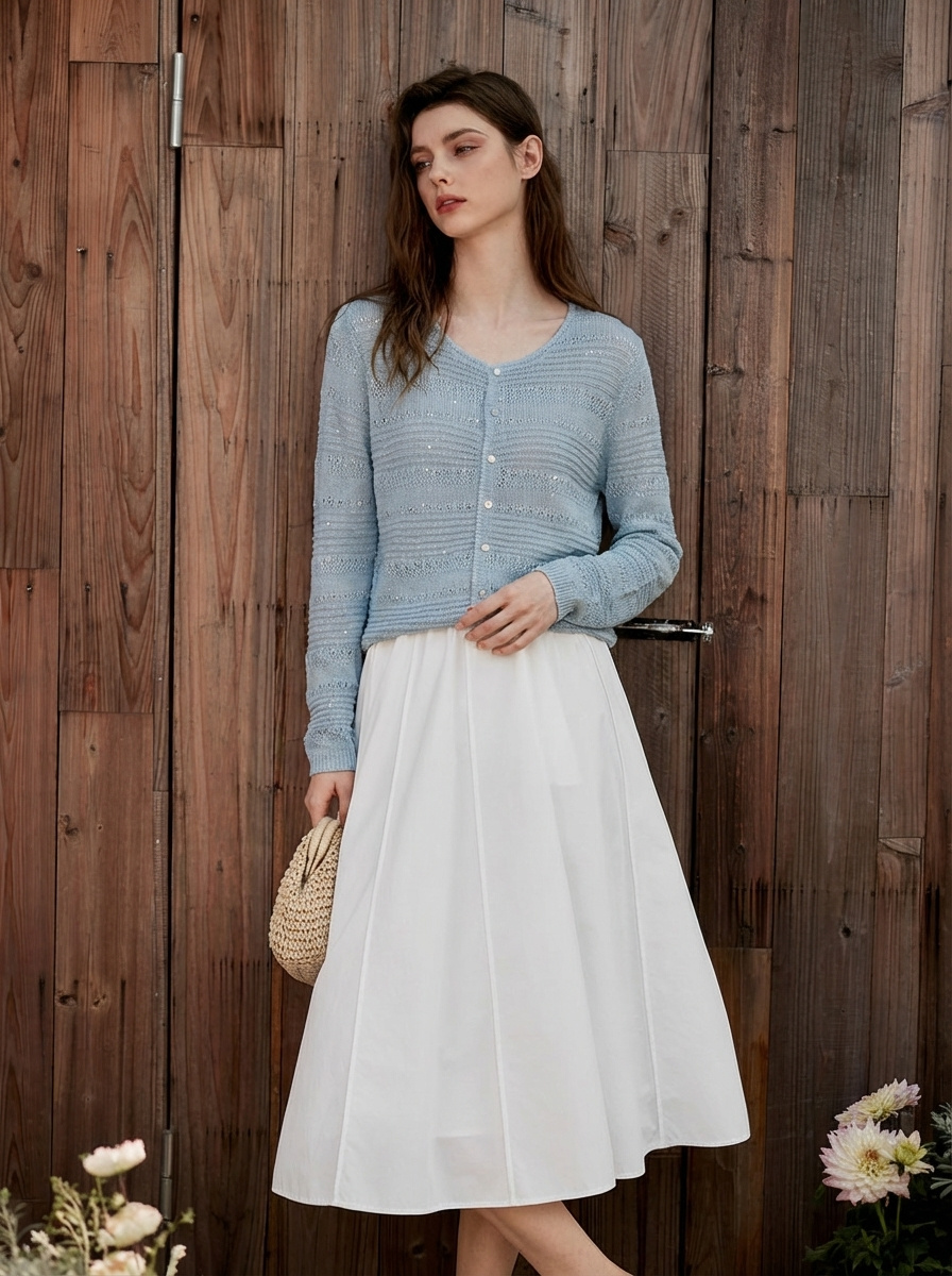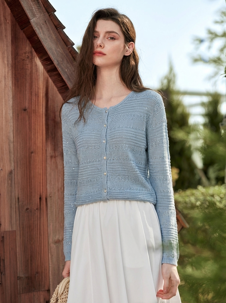 和纸亚麻混纺面料,让整件衣服自带呼吸感,透气、清爽、不闷汗,搭配精致立体钩花工艺+细闪亮片、通透朦胧又显贵,阳光下自带星光,法式氛围感拉满。