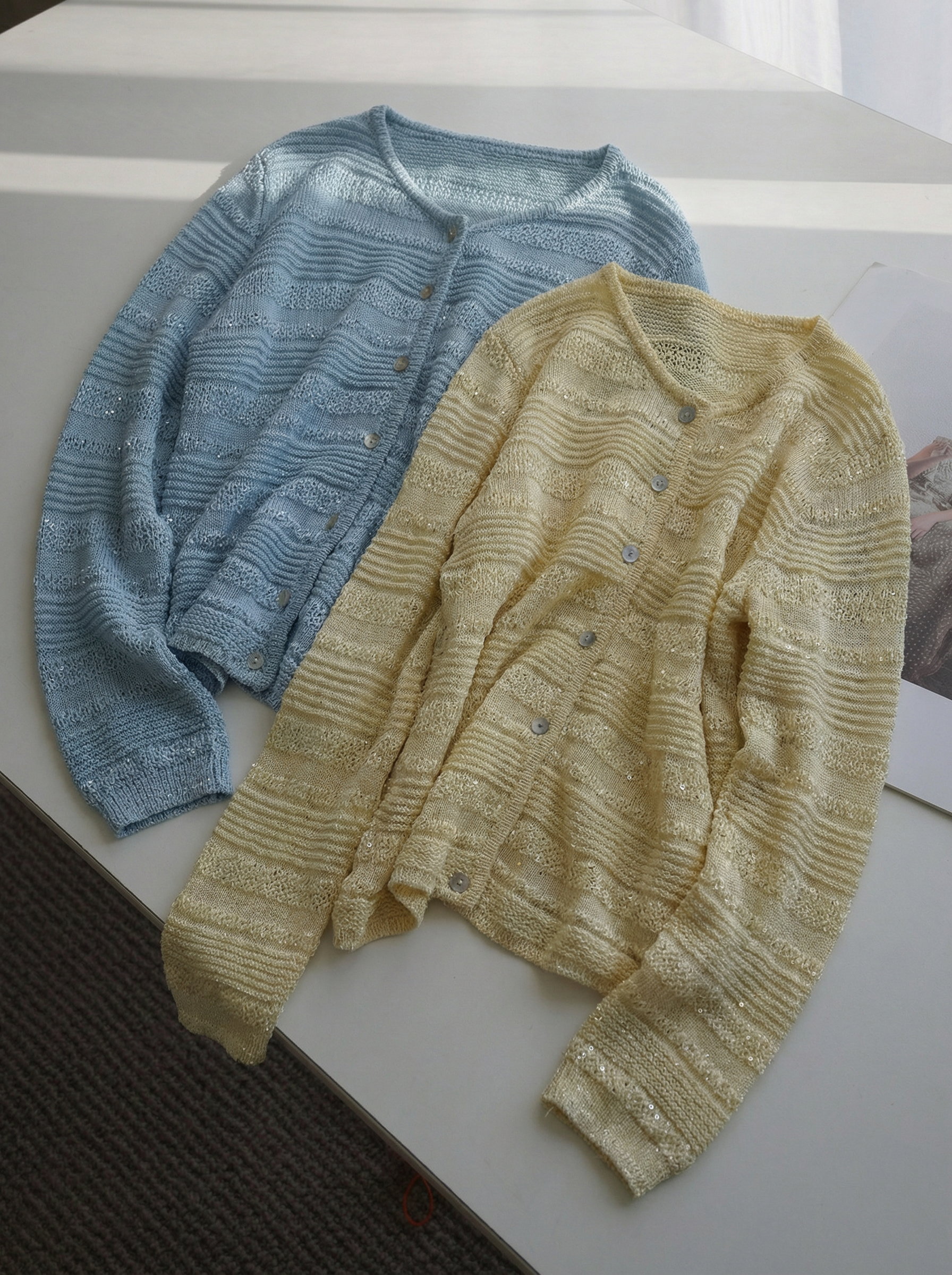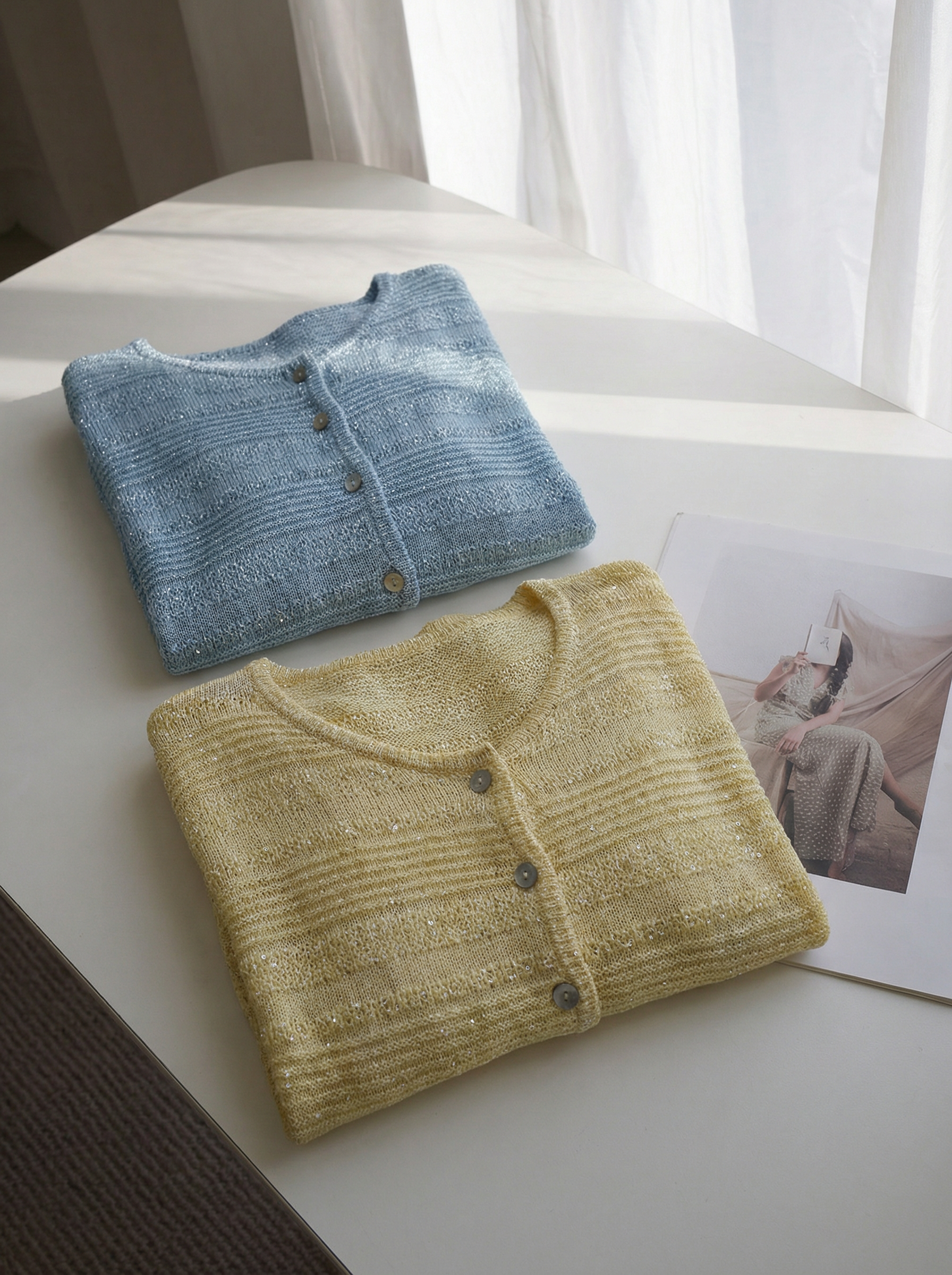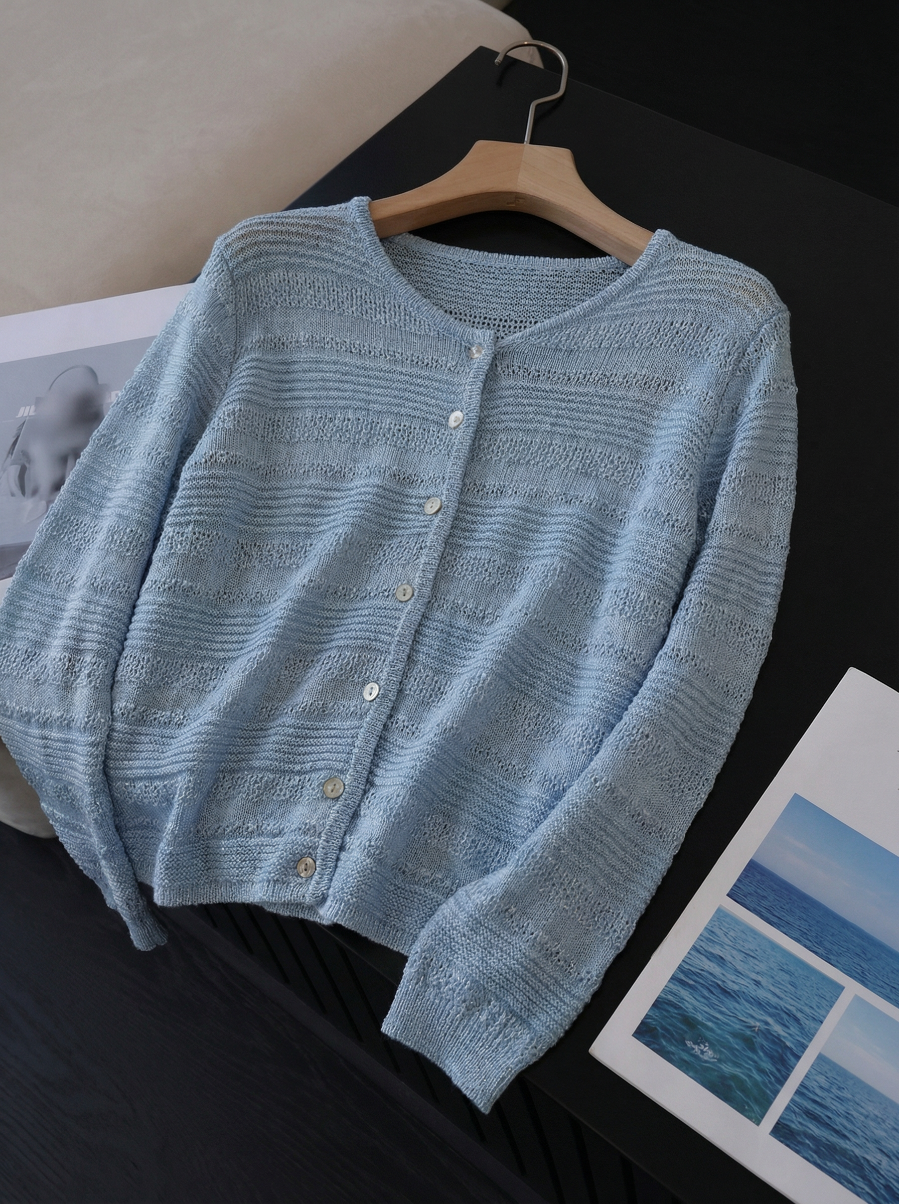 和纸亚麻混纺面料,让整件衣服自带呼吸感,透气、清爽、不闷汗,搭配精致立体钩花工艺+细闪亮片、通透朦胧又显贵,阳光下自带星光,法式氛围感拉满。