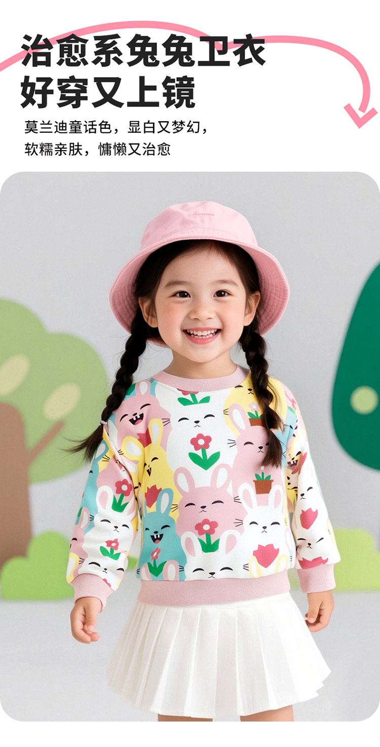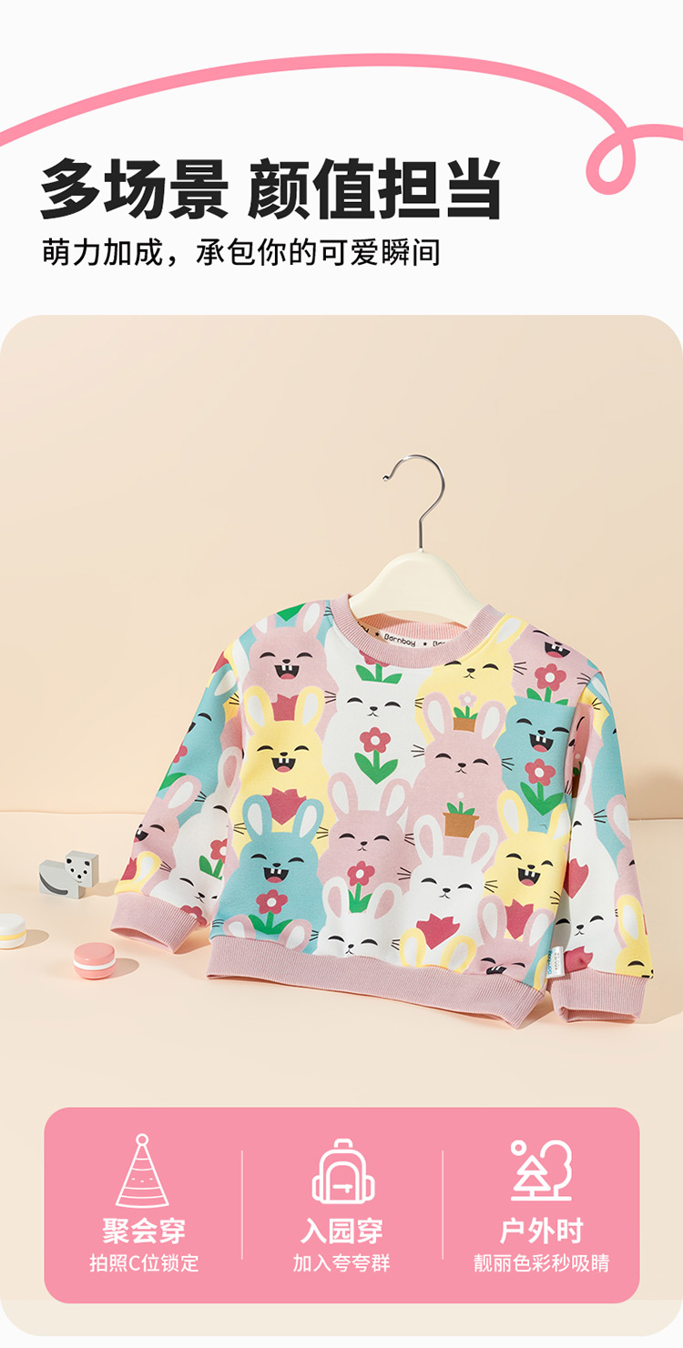 贝贝怡童装女童圆领卫衣春秋时尚卡通打底衫2025秋装儿童洋气上衣ZB3ES035