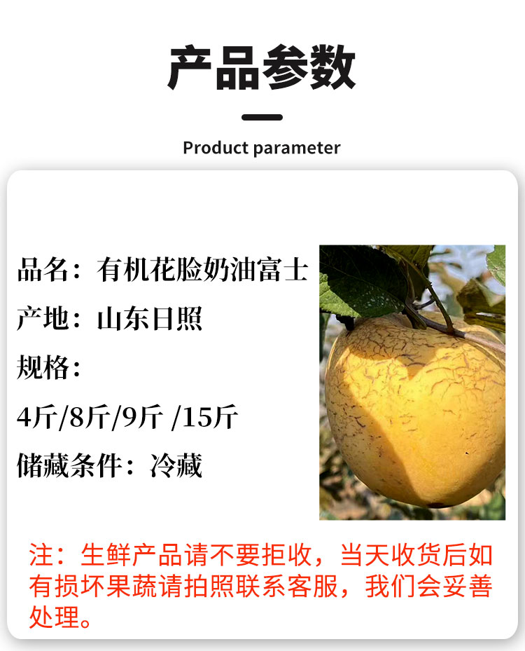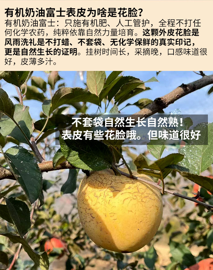 【厂商直发】有机花脸奶油富士苹果0农残果肉清甜多汁新鲜包邮