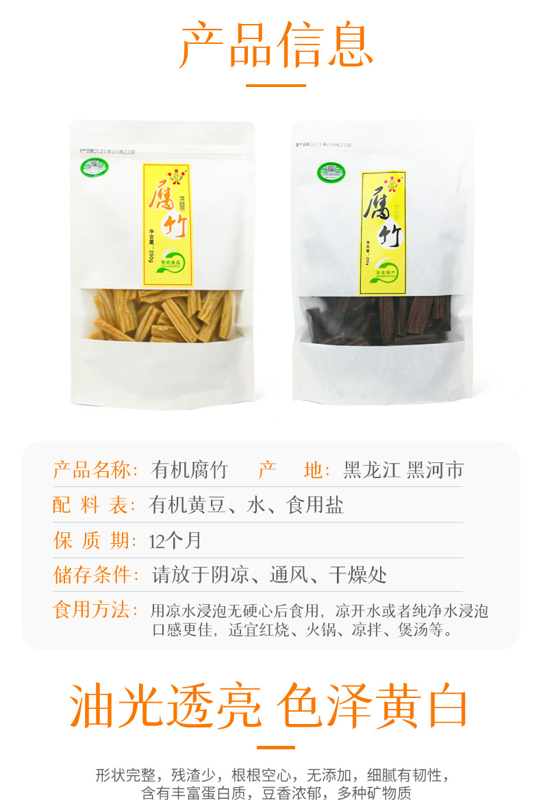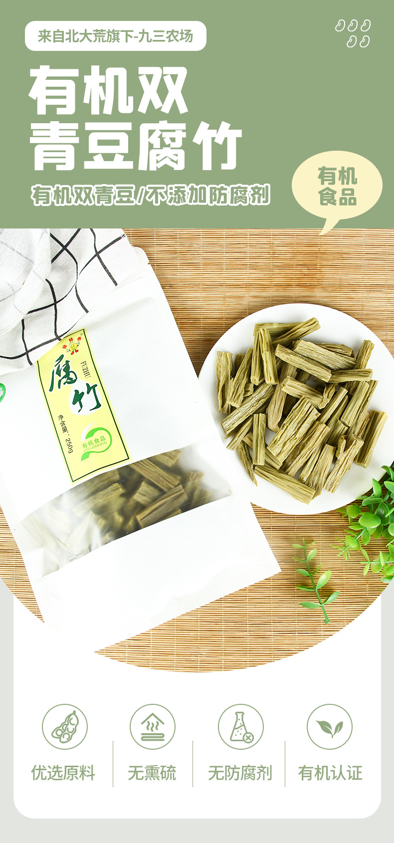 黑龙江有机双青豆腐竹 翠玉干腐竹250g*2袋