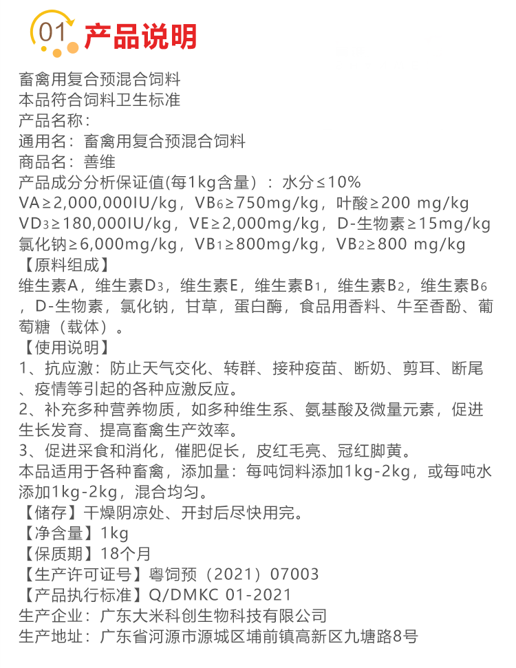 【善维】禽用复合氨基酸维生素1公斤