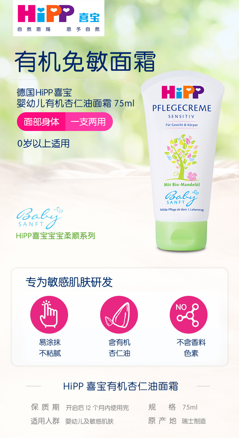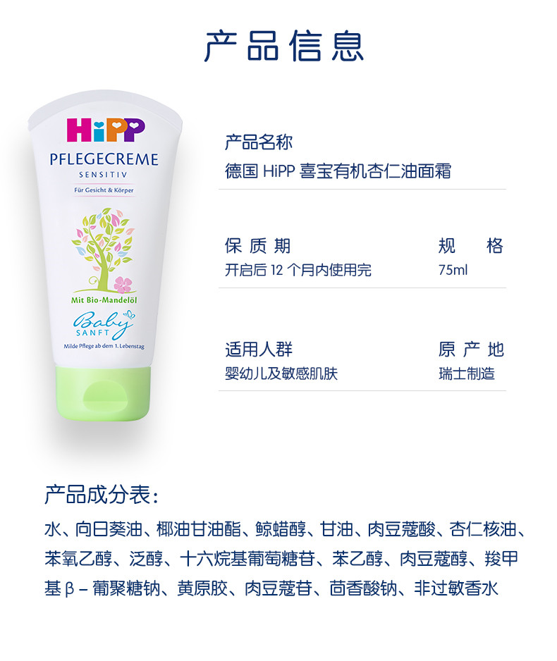 【保税仓】德国HiPP喜宝杏仁面霜75ml