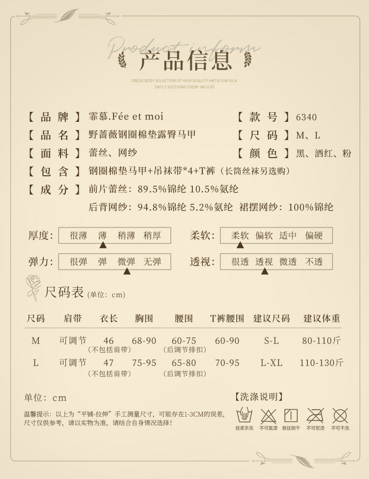 野蔷薇钢圈棉垫露臀马甲6340(有大码)