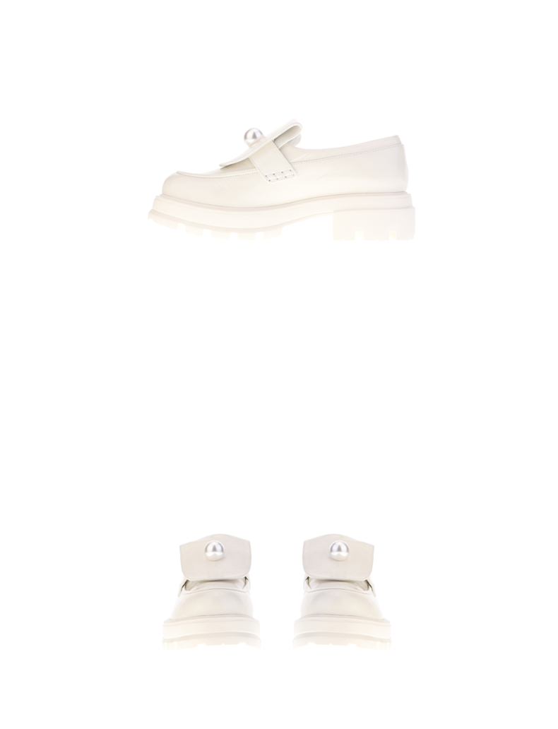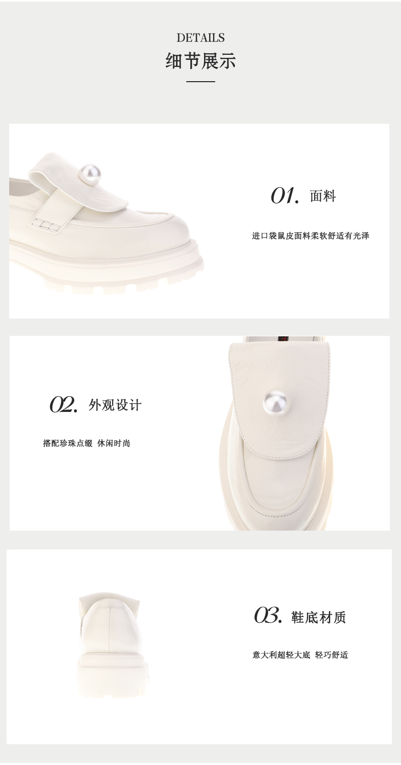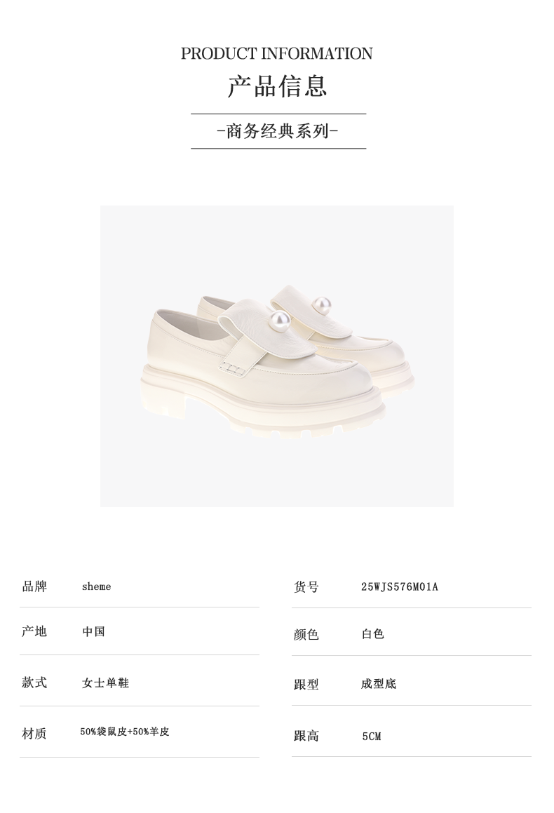 sheme女式厚底乐福鞋珍珠装饰柔软光感袋鼠皮可定制