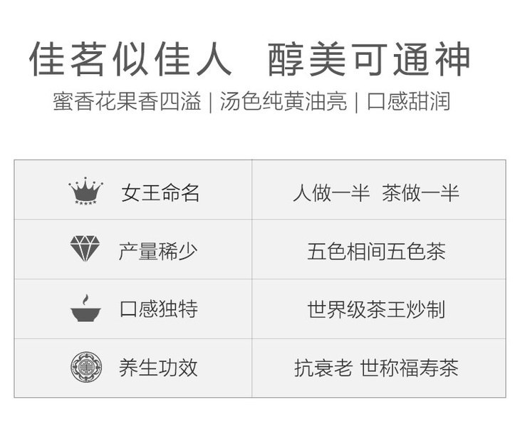 东方美人富含大量的微量元素,具有抗衰老、美白、养颜和减肥等功效,尤其适合女性饮用,历来有福寿茶之称,喝得就是健康!