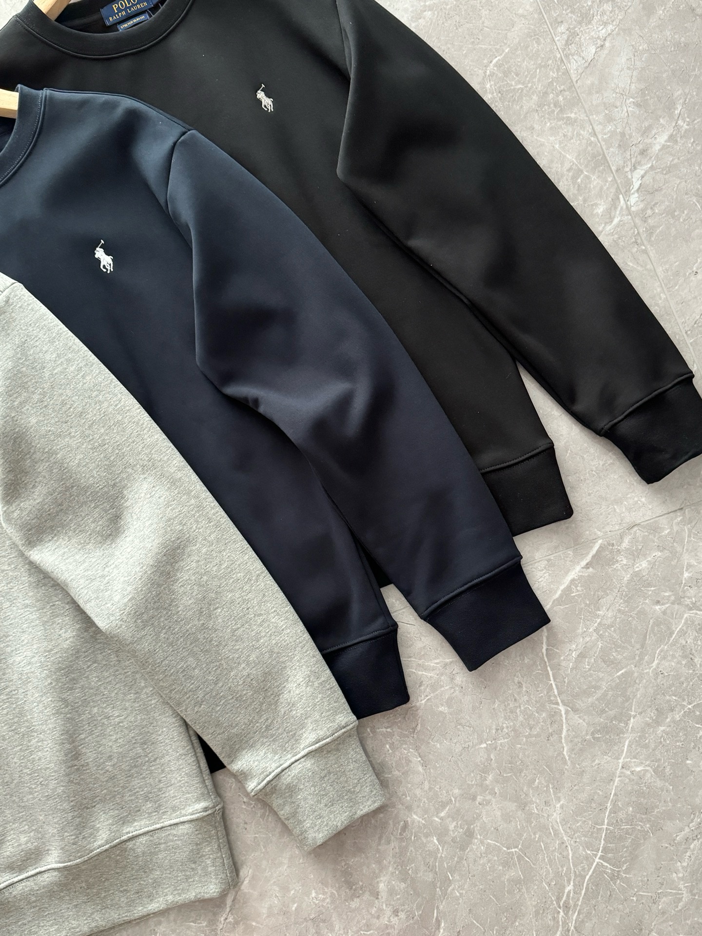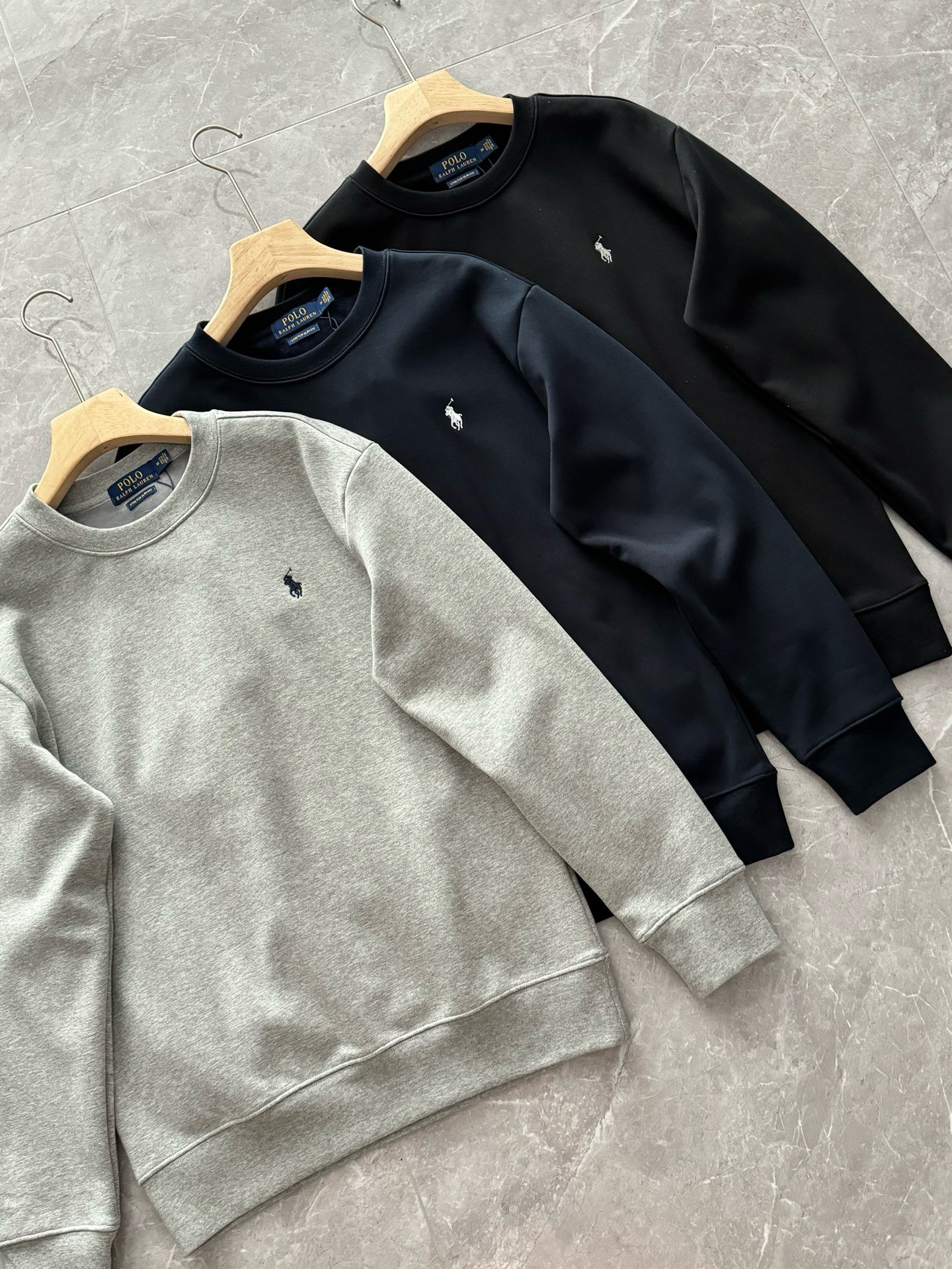 加绒款啦夫劳伦卫衣 2025秋冬装加绒卫衣 男士经典小马标款刺绣圆领卫衣