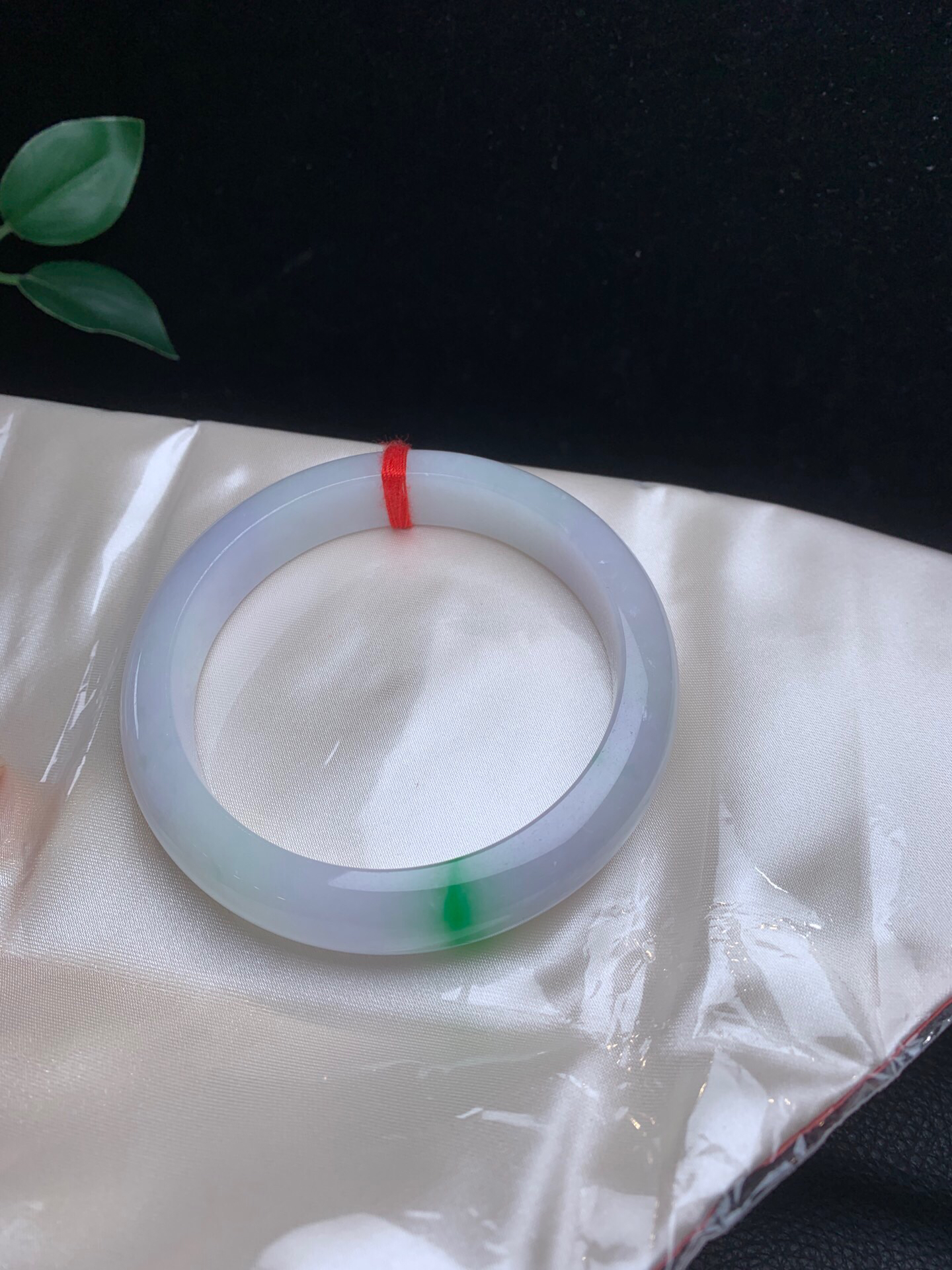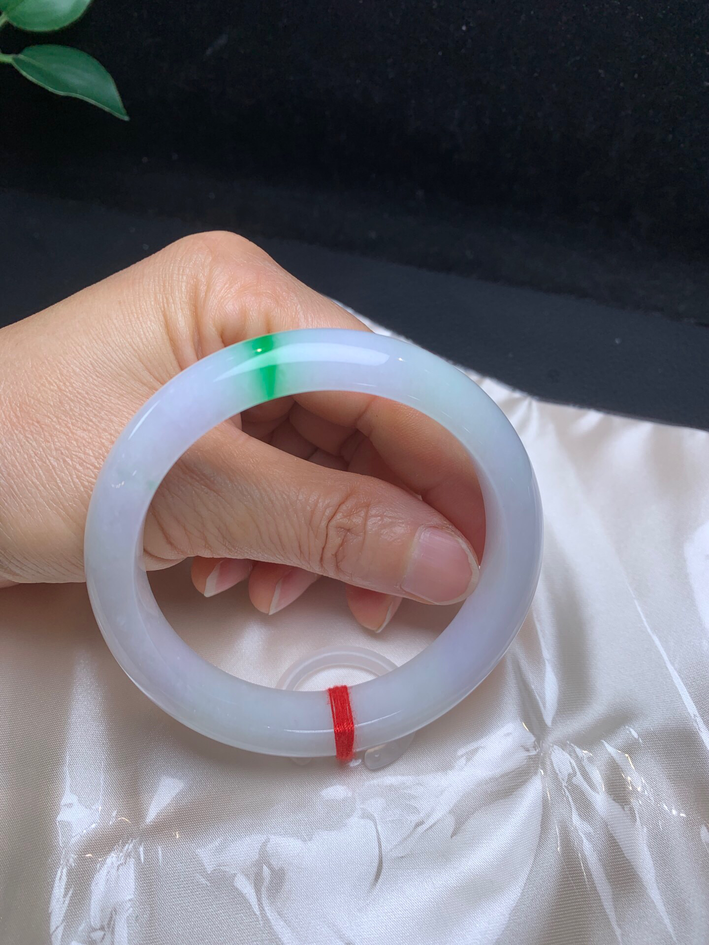 612927,58.8辣绿正圈手镯,清新白底,飘一抹辣阳绿,干净清爽